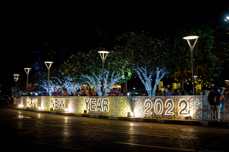 จากกาดกองต้าเราก็วนรถมาจอดที่เเถววงเวียนหอนาฬิกาที่มีการประดับตกเเต่งโคมไฟสำหรับวันปีใหม่อย่างสวยงาม
