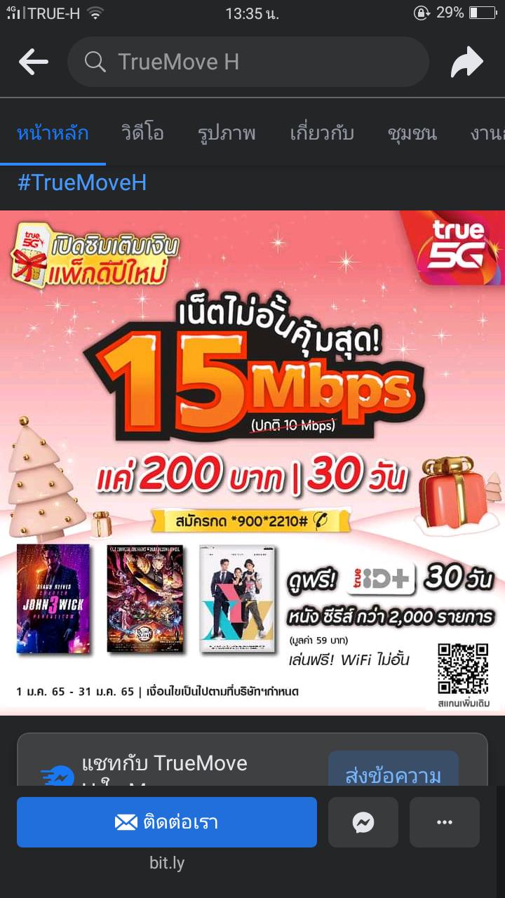 ต่อแพ็กเกจอินเตอร์เน็ตนี้ให้หน่อยเติมเงินแล้ว แพ็กเกจเน็ตเร็วไม่อั้น 15 Mbps (6โมงเย็น-6โมงเช้า)+เน็ตเร็วไม่อั้น 20 Mbps (6โมงเช้า-6โมงเย็น)+ WiFi+ฟรีทรูไอดีพลัส 30 วัน (ต่ออายุอัตโนมัติ) ของคุณจะได