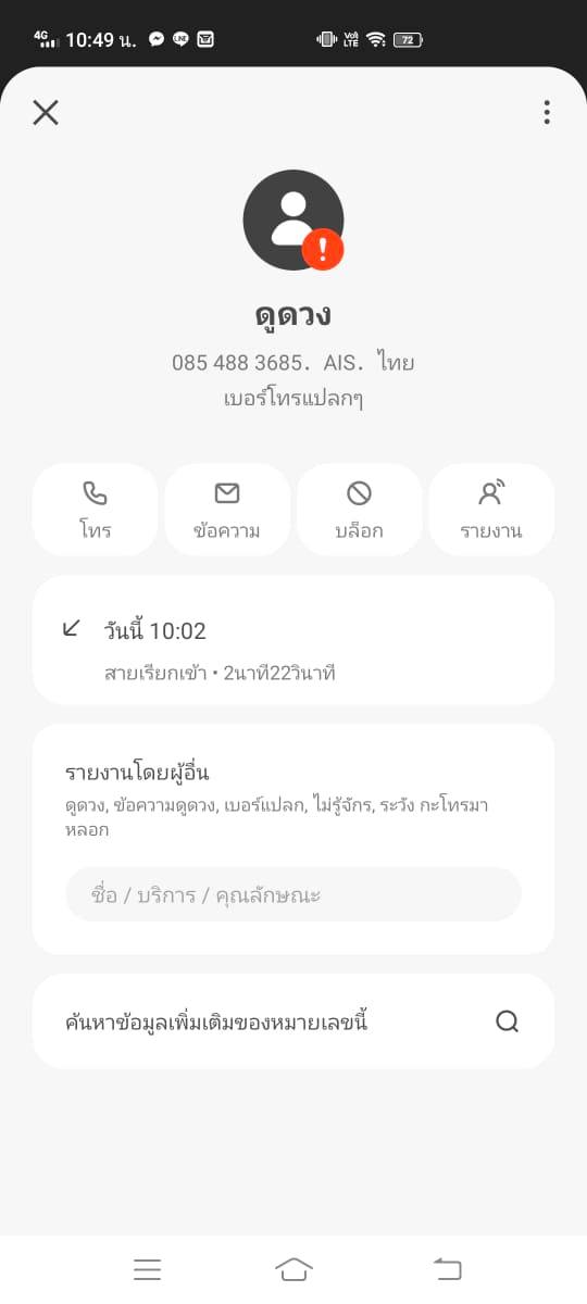 ตัวนี้ลองตรวจสอบเบอร์ใน Whoscall มันขึ้นแบบนี้ครับ