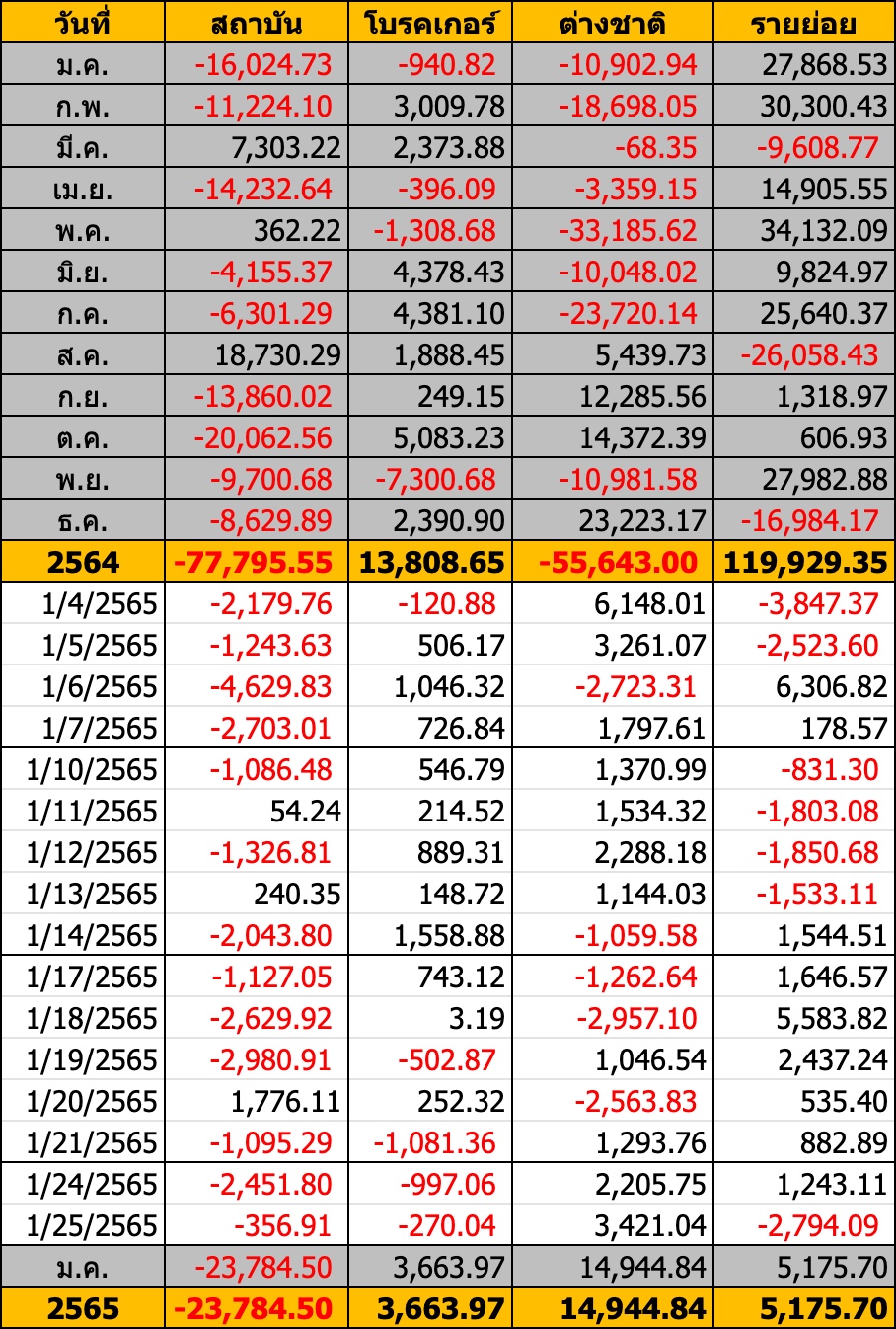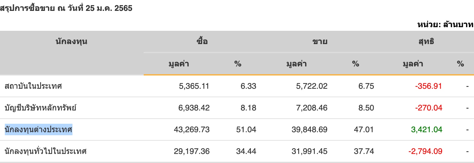 Sinthorn Summary : 25/1/2565 : ต่างชาติซื้อสุทธิ 3,421.04 ลบ.
