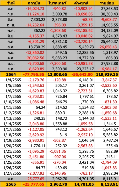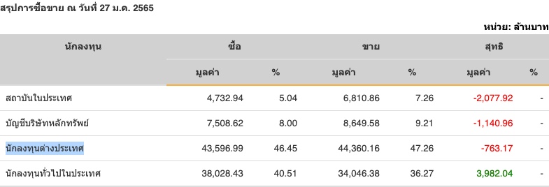 Sinthorn Summary : 27/1/2564 : ต่างชาติขายสุทธิ -763.17 ลบ.