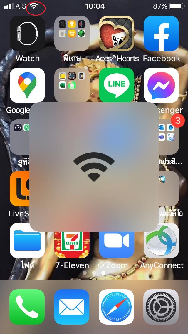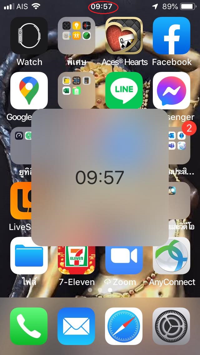 คือใช้ iphone 2 เครื่อง เครื่องแรก ip 5s แตะค้างที่เวลา ,แบต, เครือข่าย (ที่วงกลม สีแดงไว้)