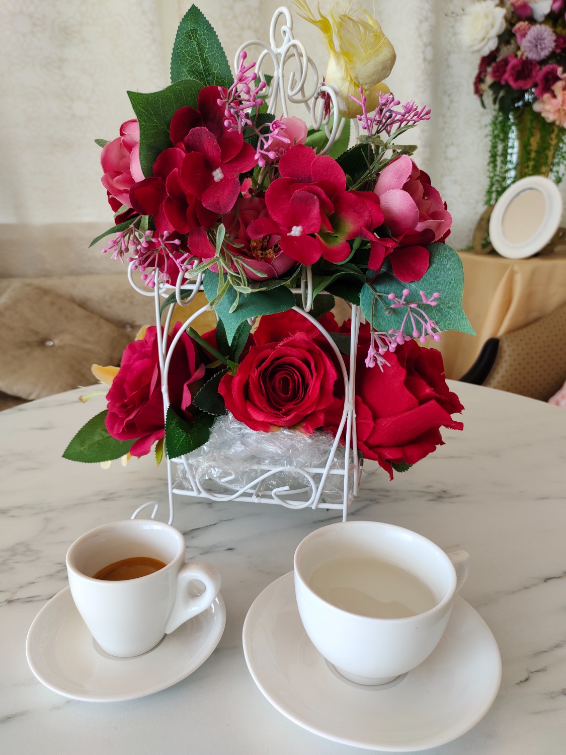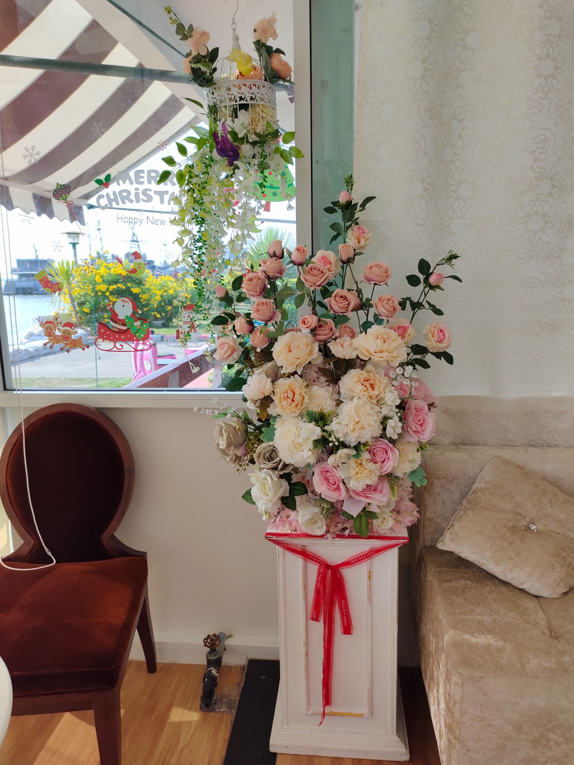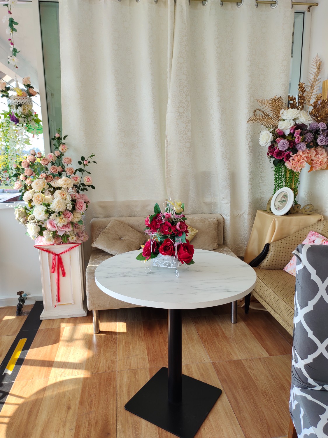 ภายในร้านตกแต่งด้วยโทนสีอ่อนๆ ชมพู ส้ม สีพาสเทล ตกแต่งด้วยดอกไม้ สวยงามมากๆ สาวๆที่ชอบดอกไม้ แนะนำมาร้านนี้เลยคะ