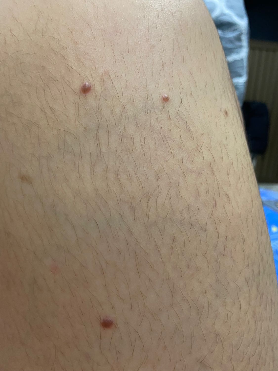 ตุ่มจะขึ้นแบบนี้เต็มขาเลยค่ะ จะรู้สึกคัน พอเกาก็เหมือนมีน้ำออกมานิดนึง ไม่ชัวร์ว่าเป็นหนองหรือเปล่า แต่ไม่ใช่เลือดค่ะ ตุ่มนี้เป็นมา 2 เดือนแล้ว เหมือนจะมีเพิ่มแ