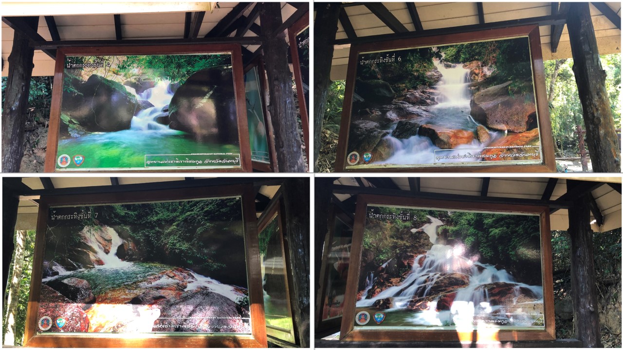 ถัดจากศาลเจ้าพ่อฯ ก็จะมีป้ายแสดงแผนที่และภาพน้ำตกแต่ละชั้น แต่เหมือนจะไม่ครบทุกชั้น