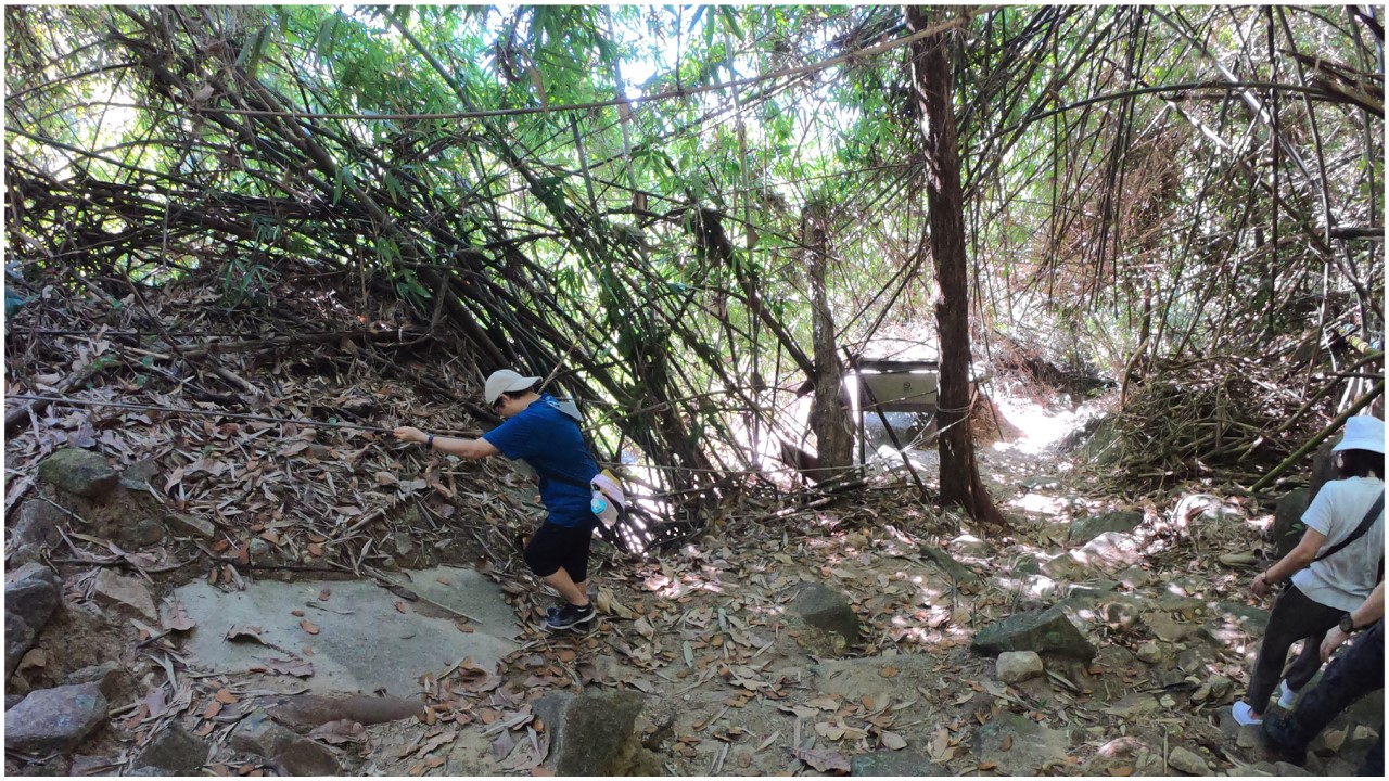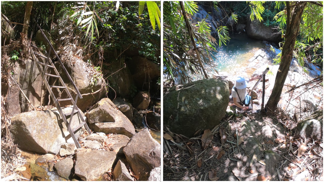 เพื่อนที่แยกเดินล่วงหน้าขึ้นไปด้านบนก่อน เจอป้ายแล้วเดินลงบันไดมาบอกตรงนี้ น้ำตกชั้น 7