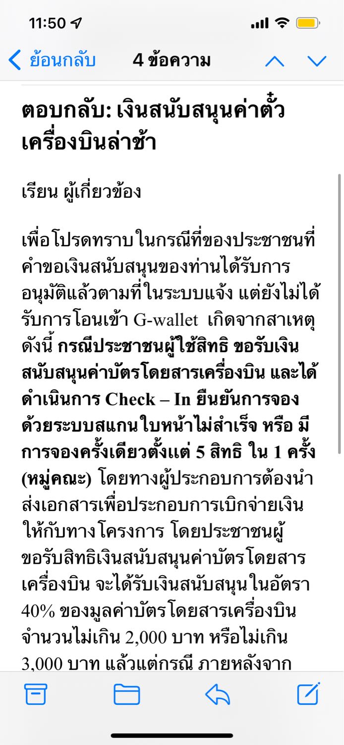 ทำไมถึงยังไม่ได้เงินสนับสนุนตั๋วเครื่องบินเฟส4