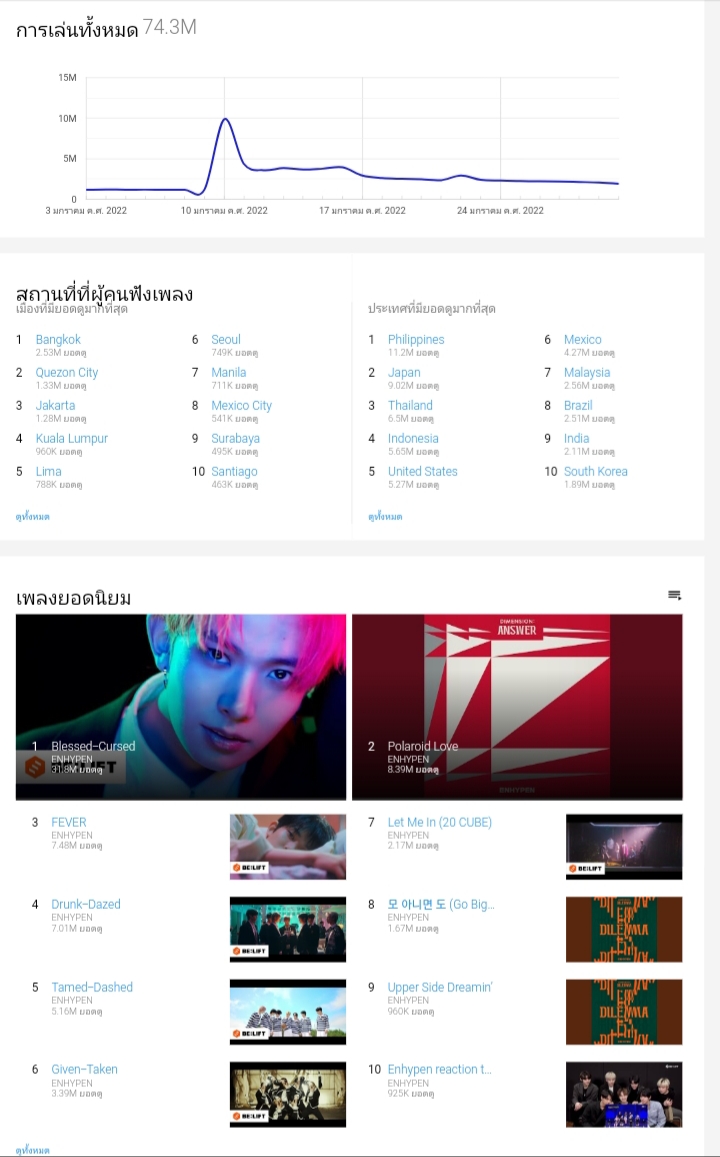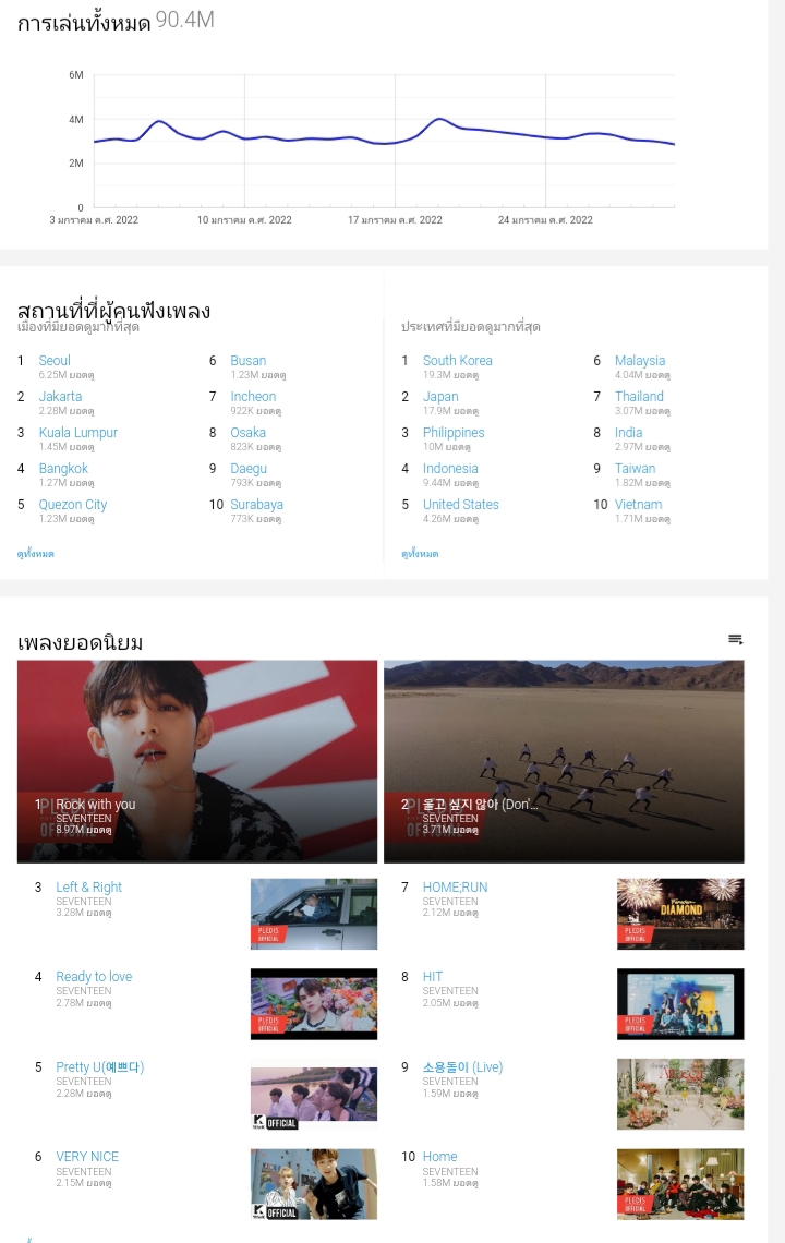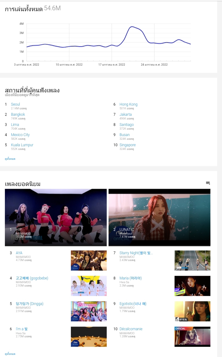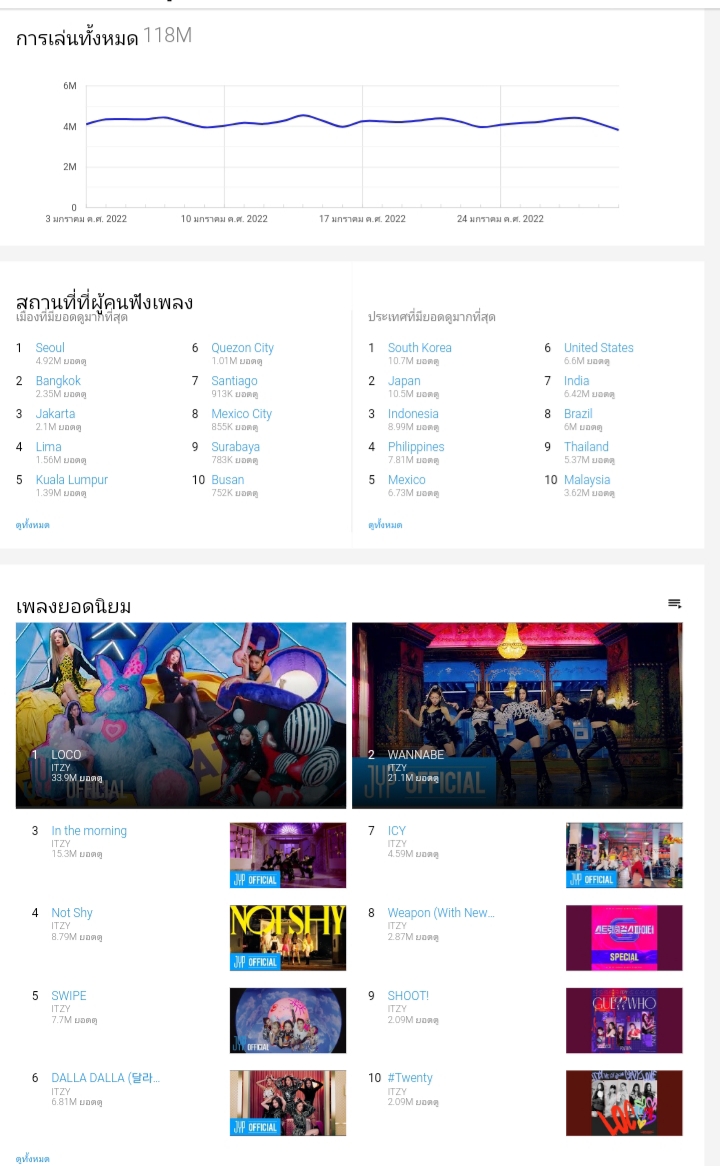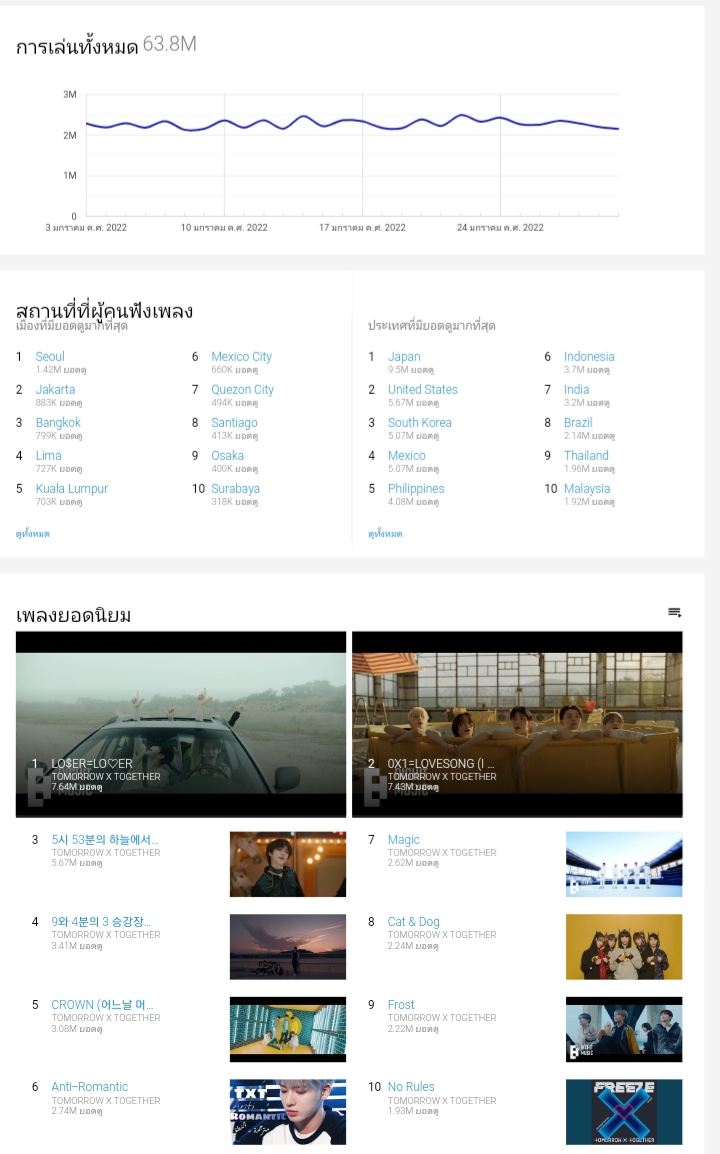 *ข้อมูลณ.1/2/65 เก็บยอด28วันจากyoutube chart