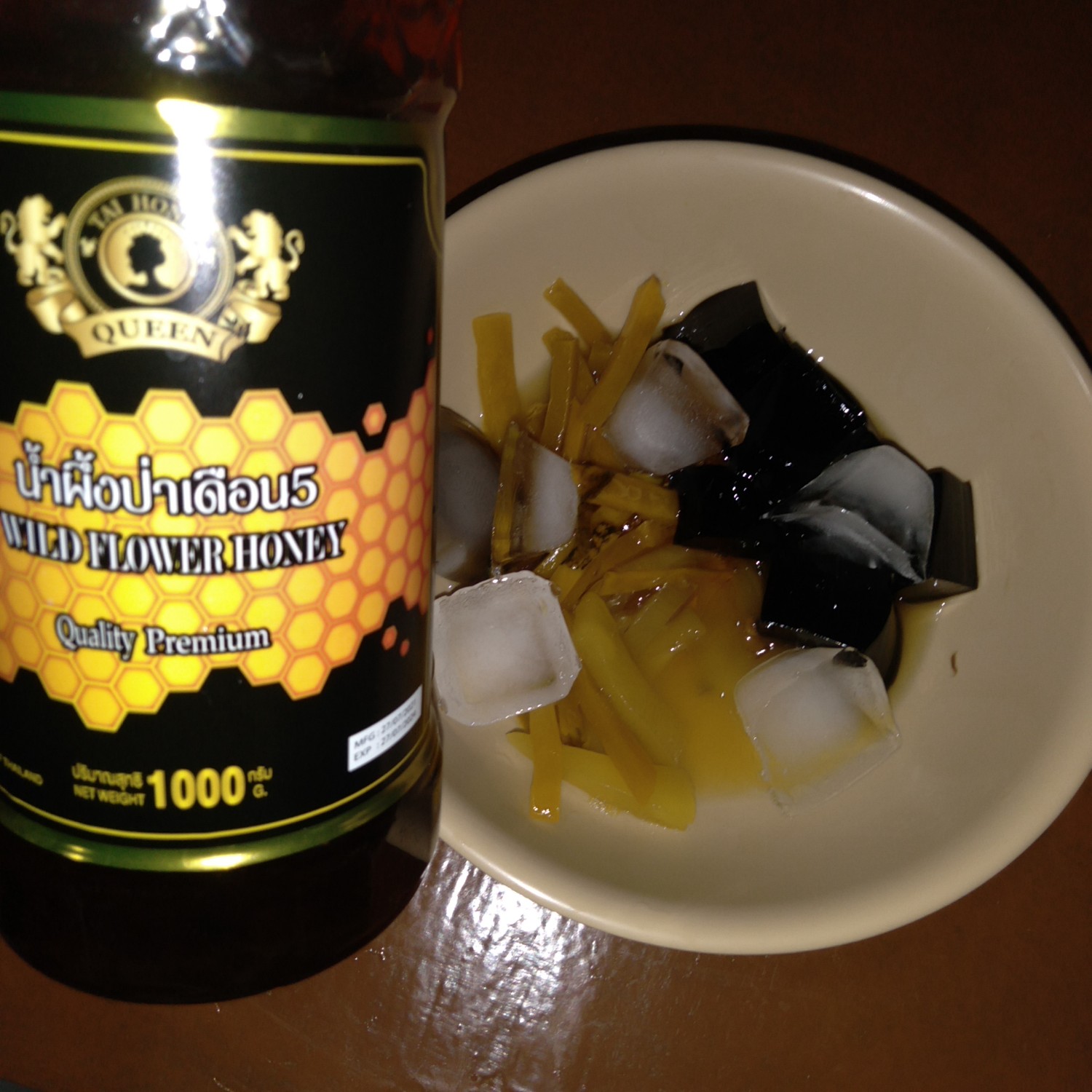 ใส่น้ำแข็งนิดหน่อย ราดด้วยน้ำผึ้งเดือน 5