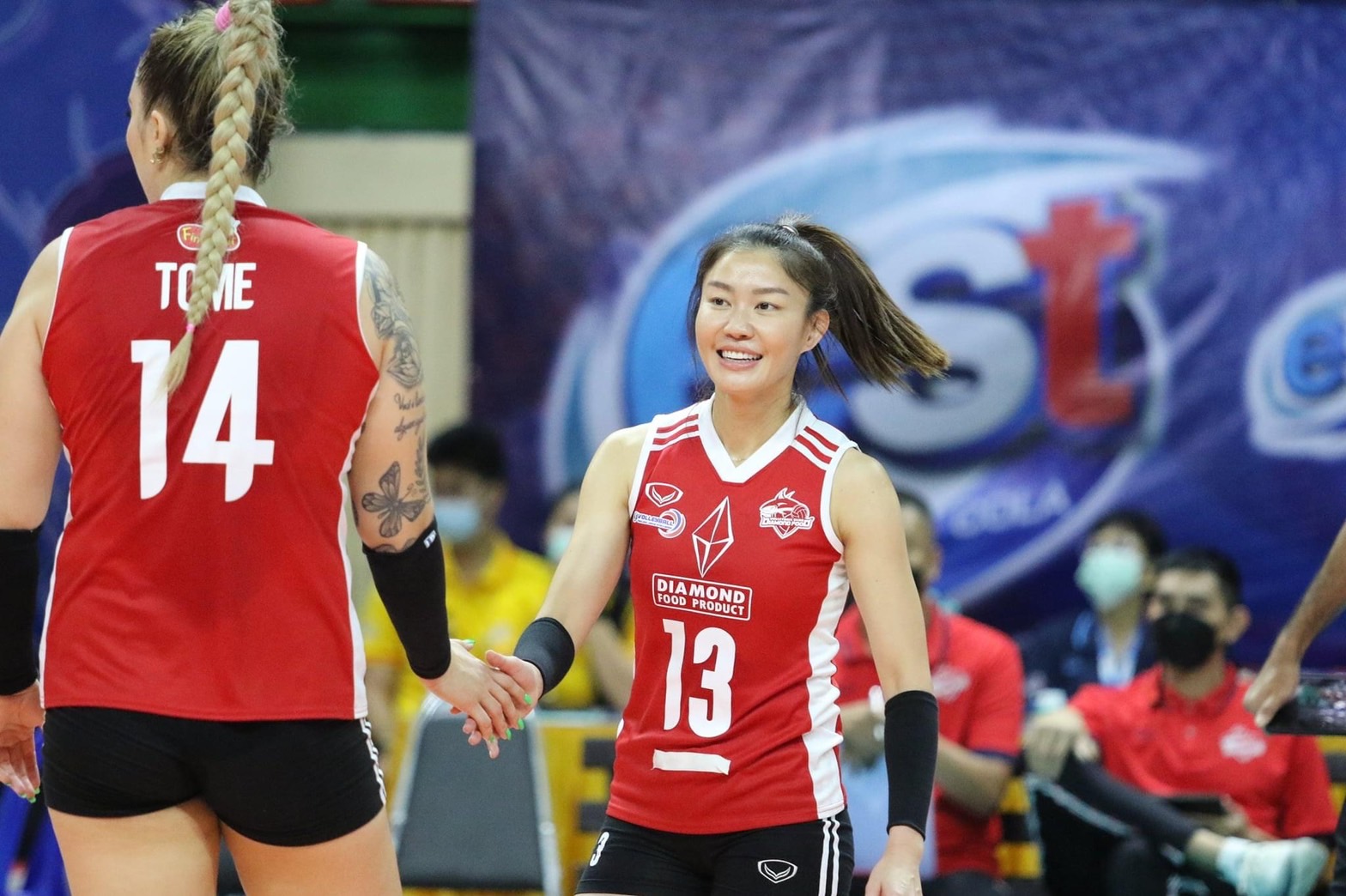 เปิดตัวละครลับในช่วงเลก2 ไปเป็นที่เรียบร้อยแล้วกับมือเซตระดับโลก นุศรา ต้อมคำ ที่ปีนี้เลือกซบทีมเก่าอย่าง ไดมอนด์ ฟู้ด ไฟน์เชฟ สปอร์ต คลับ ทีมที่เธอพาเถลิงบัลลังค์แชมป์ครั้งแรกไปเมื่อฤดูกาล 2020/2021 สาวจากจังหวัดราชบุรีเลือกพักการเล่นในเลกแรกเพราะตัวเธอเองก็กรำศึกหนักมาตลอดอาชีพลูกยางโดยในปีที่ผ่านมาตัวเธอลงเล่นทั้งในเกมนานาชาติแบบแน่นขนัดไม่ว่าจะเป็น วอลเลย์บอลเนชันส์ ลีก ยาวไปช่วงปลายปีกับรายการสโมสรหญิงชิงแชมป์เอเชีย 2021 ซึ่งเธอเองพาทีมเจ้าภาพอย่างสโมสรนครราชสีมา คิวมินซี วีซี คว้ารองแชมป์มาครอง