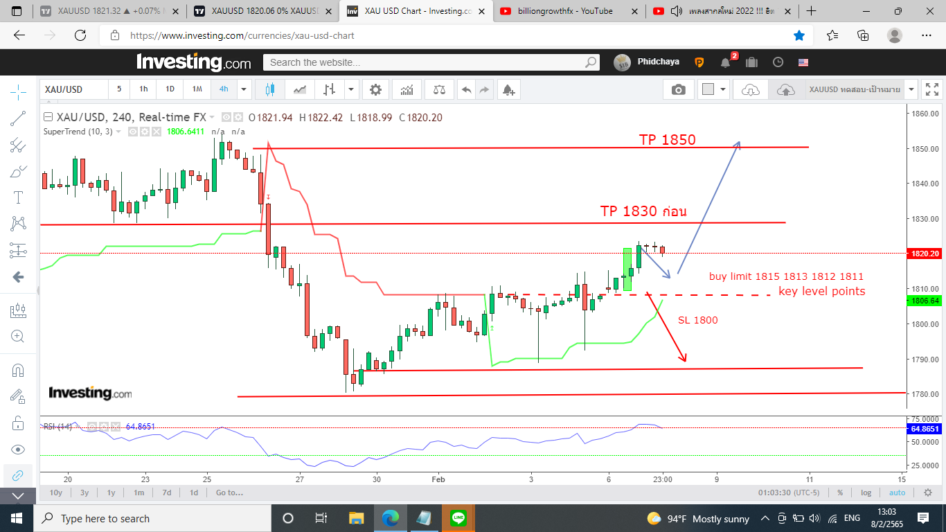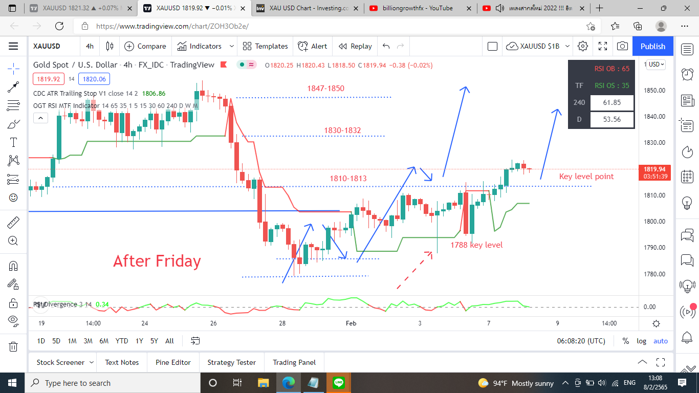 08/02/2022 Update ตามแผน XAUUSD ส่งสัญาณแท่งเบรคตั้งแต่เมื่อคืน 1823 สิ่งที่เราต้องทำตามแผนต่อไปคือ??