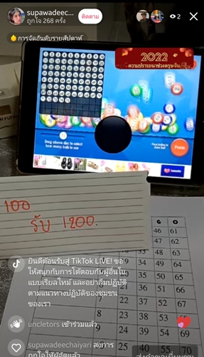 ผมเล่นtiktok แล้วเจอไลฟ์สดที่น่าจะเข้าข่ายการพนันออนไลน์ แคปมาให้ดูดังนี้