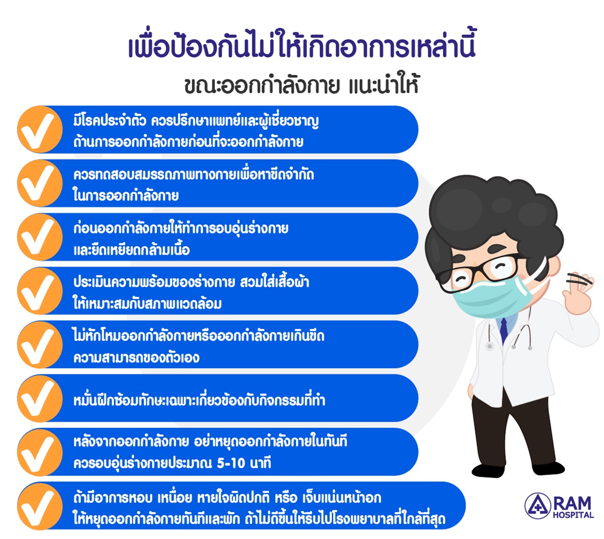 อาการเหล่านี้สามารถเกิดขึ้นได้ในขณะที่เราออกกำลังกาย ดังนั้นเพื่อป้องกันไม่ให้เกิดอาการเหล่านี้ แนะนำให้