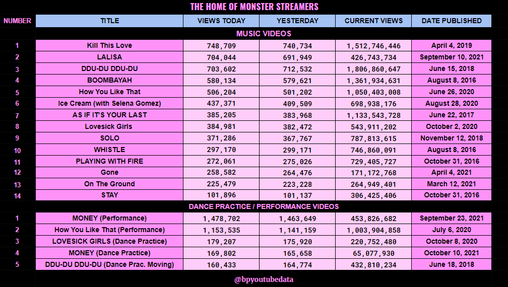🔥[📊220210] Most Viewed BLACKPINK Music Videos and Dance Practice/Performance Videos in the last 24 hours: