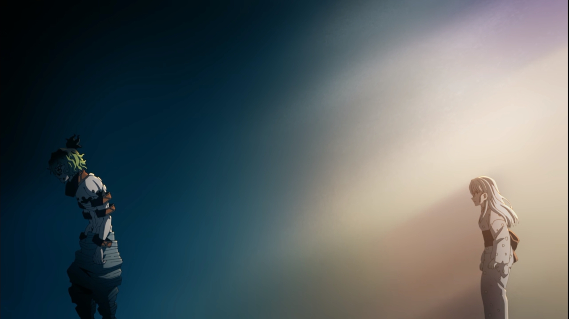 เปิดมา ก็เริ่มด้วยฤทธิ์มนต์อสูรโลหิตของเนซึโกะที่คลี่คลายทุกอย่าง มนต์น้องนี่สารพัดประโยชน์เสียจริงๆ เรียกได้ว่าเหมือนยาหม่องบ้านเรา และไฟสีชมพูจากยูโฟ่ก็สวยเช่นเคย
