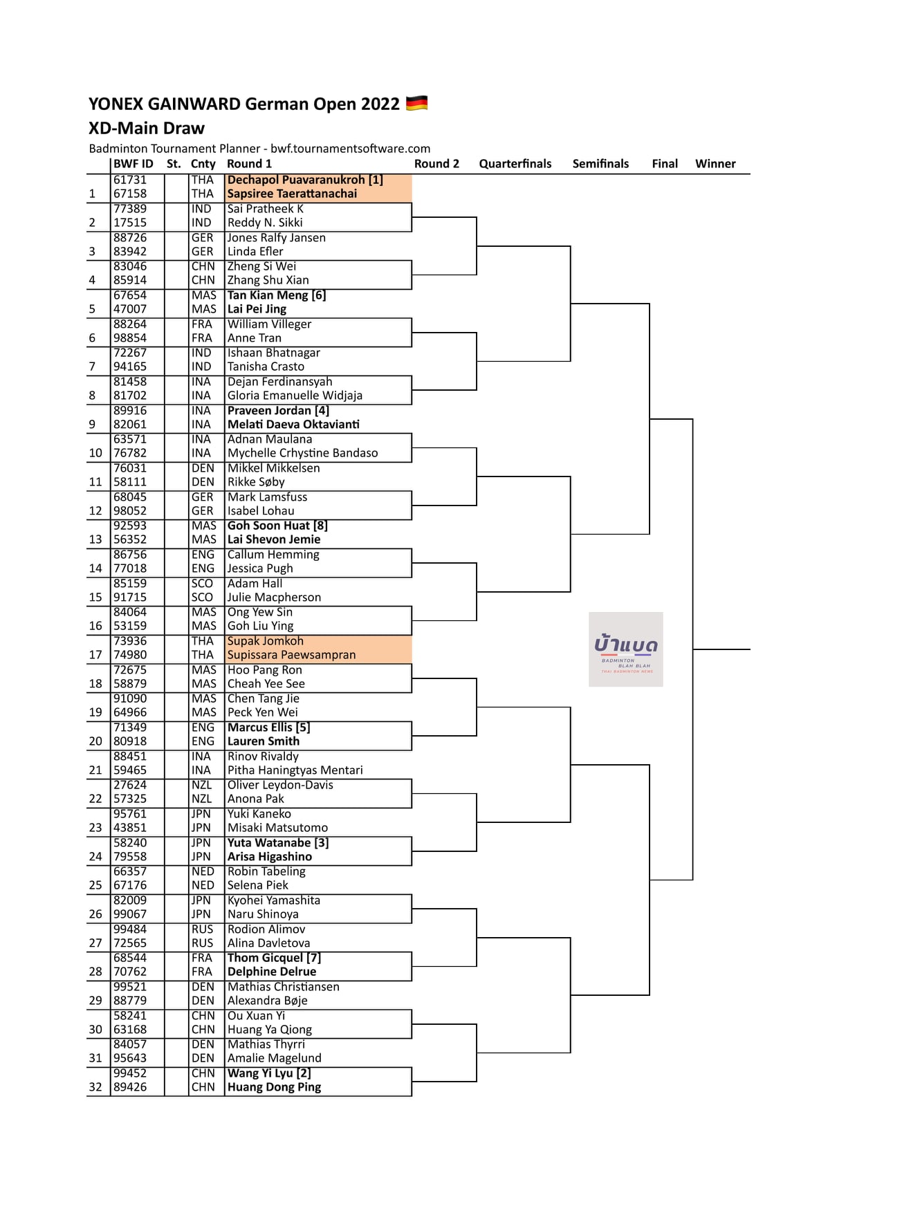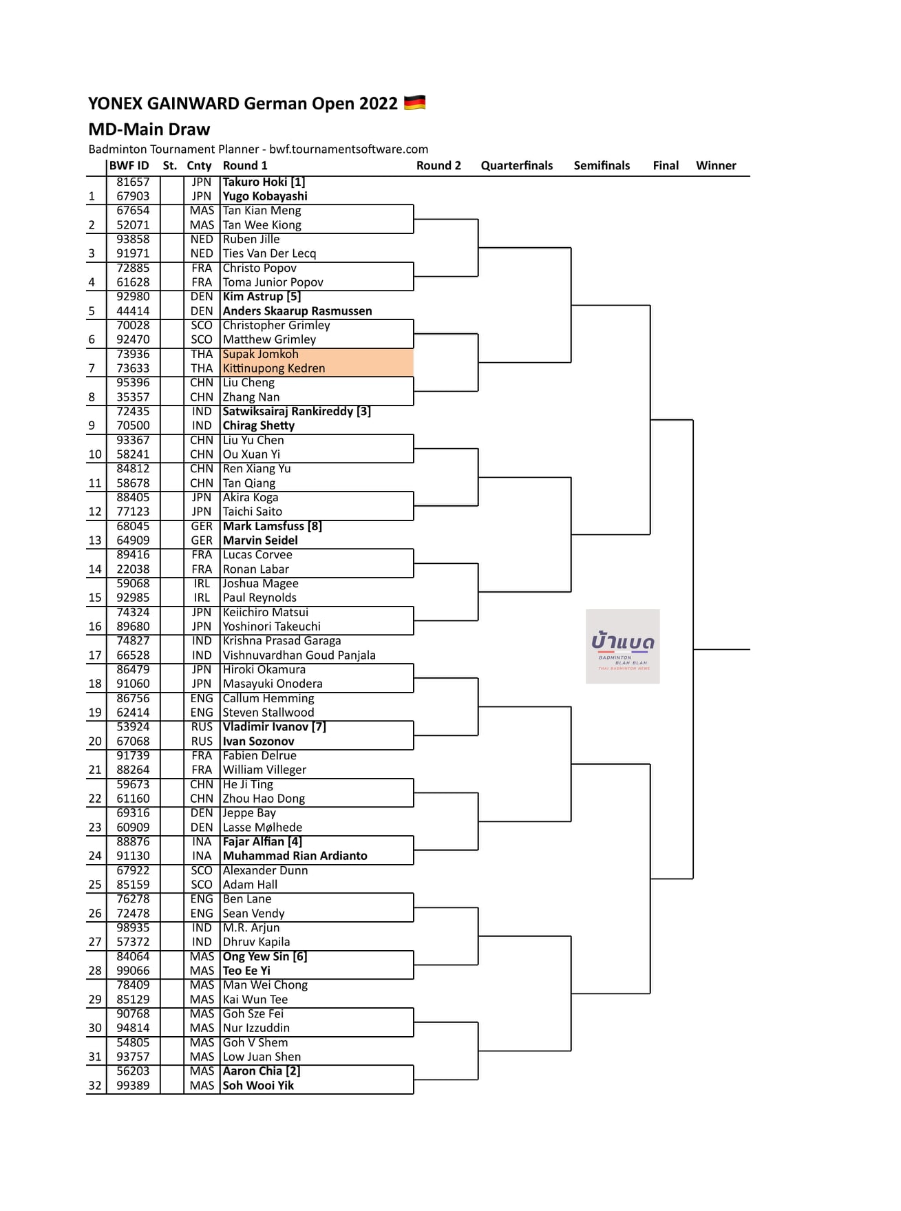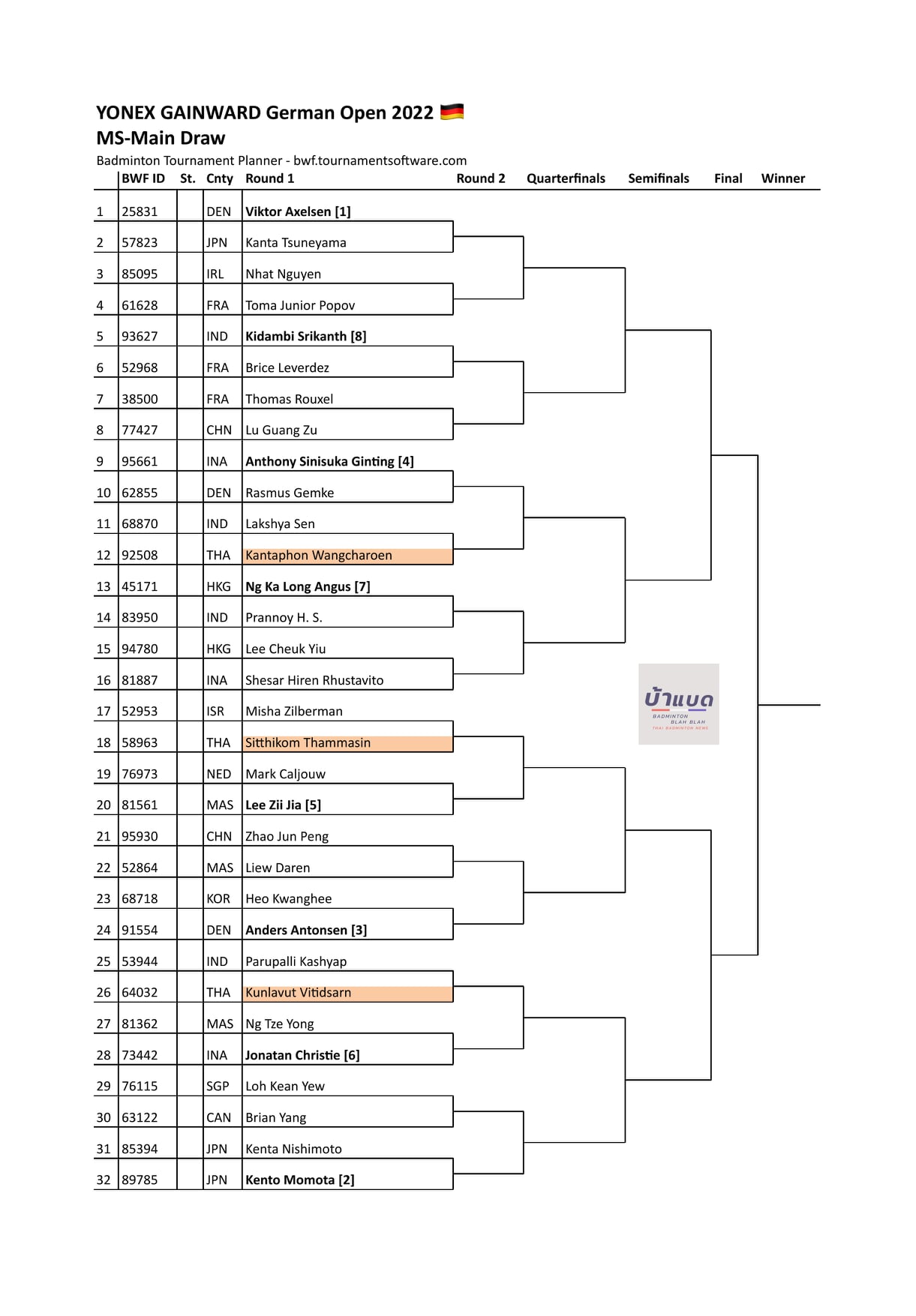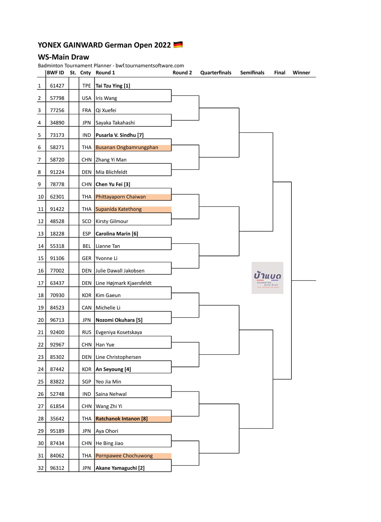 เชียร์สด แบดมินตัน YONEX GAINWARD German Open 2022 รอบก่อนรองชนะเลิศ
