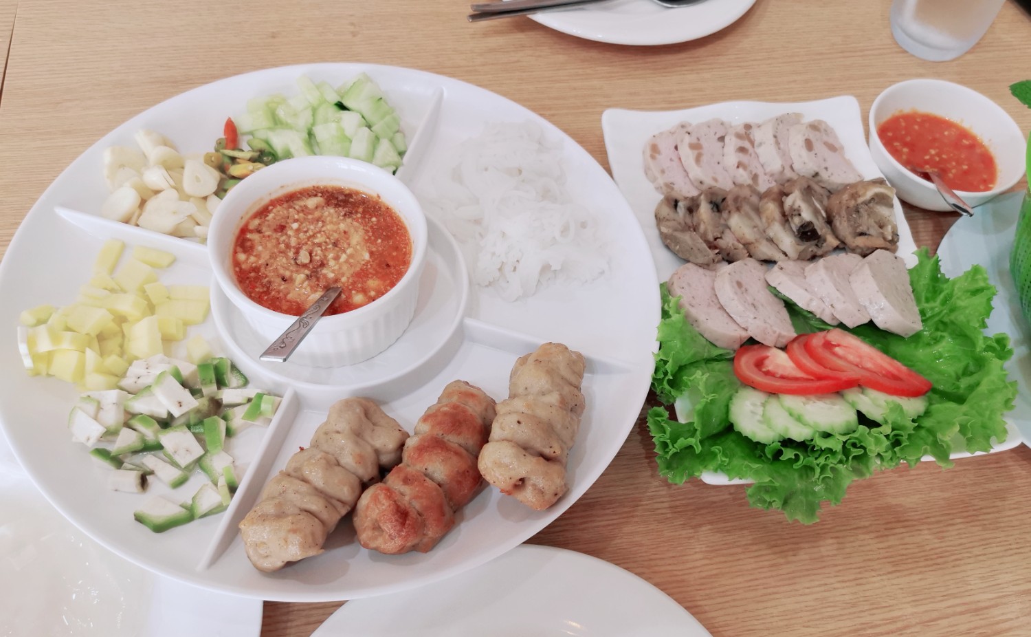 Day 1 เราขึ้นเครื่องจากกรุงเทพฯ ประมาณ 10 โมงครึ่ง กว่าจะมาถึงเลยก็เกือบเที่ยงแล้ว ก่อนอื่นต้องหาอาหารเวียดนามอร่อย ๆ กินซะหน่อย กลางวันนี้เราฝากท้องไว้ที่ร้านเลยดานัง ซึ่งอยู่ไม่ไกลจากสนามบินขับรถ 10 นาทีก็ถึง นั่งทานกันชิลล์ ๆ ไม่ต้องรีบร้อน เมนูที่ไม่ควรพลาดก็คือ แหนมเนือง และหมูยอลวกจิ้ม นอกจากอาหารเวียดนามร้านนี้เค้าก็มีอาหารหลากหลายมาก ๆ อาหารอร่อย สะอาด ราคาไม่แพง