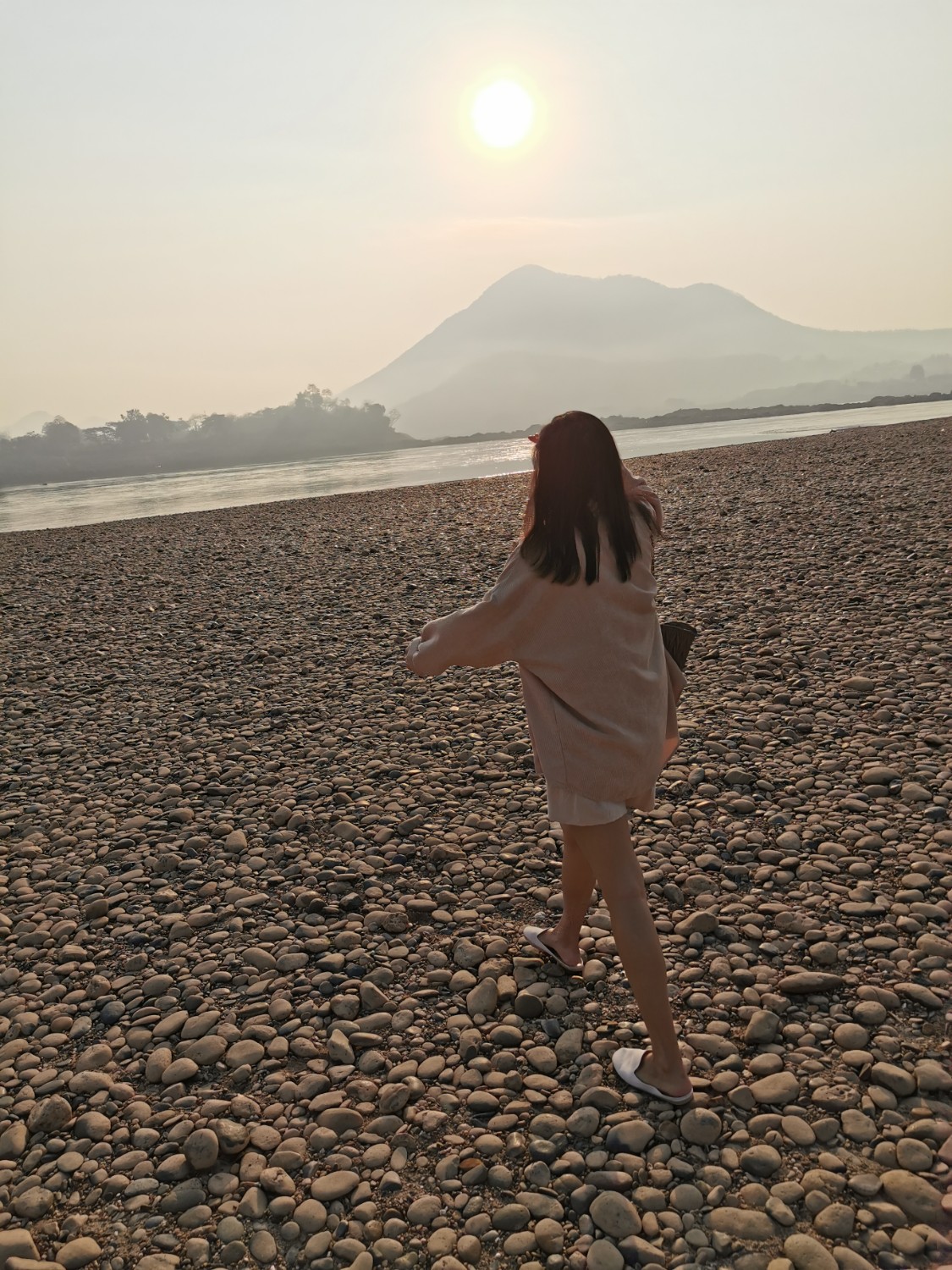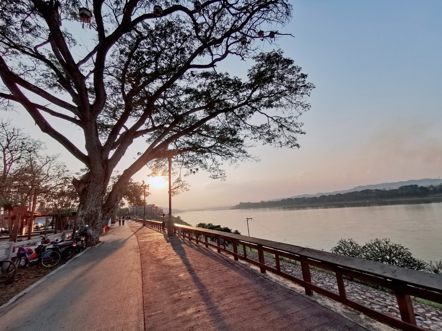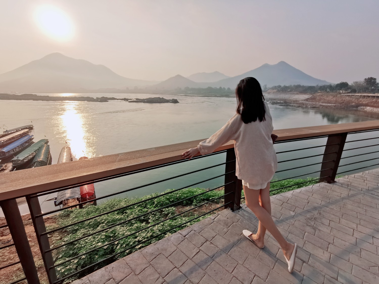 พอแดดเริ่มร่มเราก็ออกไปเดินเล่นเลาะริมน้ำโขงไปเรื่อย ๆ ชมพระอาทิตย์ตก เป็นอะไรที่ฟินสุด ๆ แสงสวยมา