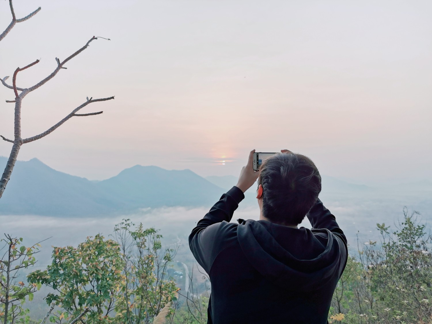 Day 2 เราตี 5 ครึ่งมาเตรียมตักบาตรตอน 6 โมง จากนั้นก็ขับรถไปขึ้นภูทอกใช้เวลาเดินทาง 15 นาทีก็ถึงจุดขึ้นรถกระบะ นั่งรถประมาณ 10 นาที ก็ถึงยอดภู โชคดีมากที่วันนี้มีทะเลหมอก ทั้งที่เป็นช่วงปลายฤดูหนาวแล้ว และดีที่เรามาวันธรรมดาคนไม่เยอะมาก มีที่ให้ยืนชิลล์ ๆ แบบไม่ต้องเบียดเสียด