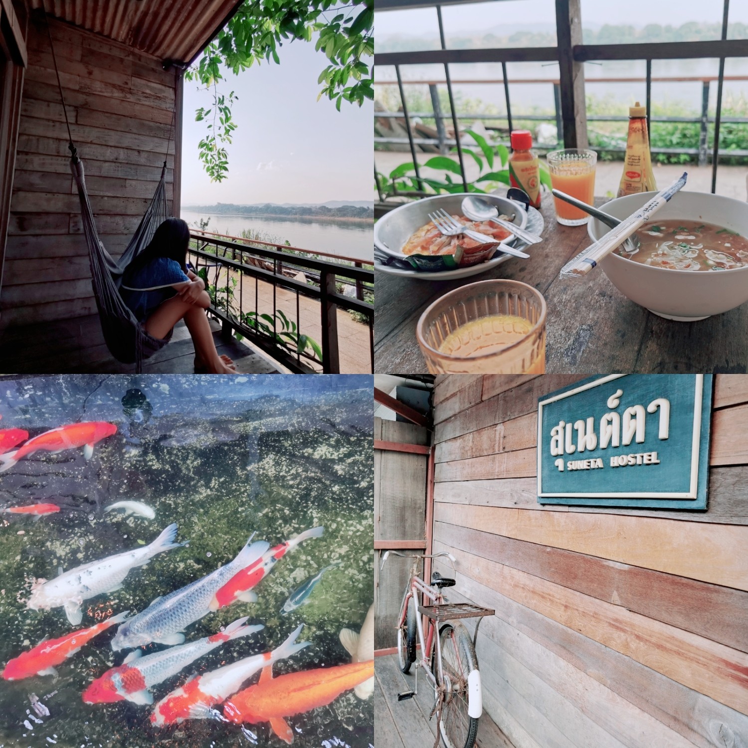 ที่พักของเราในทริปนี้ `สุเนต์ตา` เป็นบ้านไม้เก่าที่มีเอกลักษณ์ตกแต่งได้คลาสสิกสุด ๆ เหมือนหลุดไปอยู่ยุค 60 ตั้งอยู่ริมแม่น้ำโขง เราพักกันที่ห้อง Riverview Deluxe ตั้งอยู่ชั้น 1 ของที่พัก วิวดีเลยล่ะ นั่งมองแม่น้ำโขงเพลิน ๆ ได้ ด้วยความที่เป็นบ้านไม้ห้องจะไม่ค่อยเก็บเสียงเท่าไหร่ (ตอนกลางคืนแอบมีหนูวิ่งกุกกักๆ จนฝ้าแทบทะลุให้เราตกใจตื่น 😆) แต่โดยรวมแล้วที่นี่ก็โอเคมาก ๆ สำหรับเราขอแค่ห้องพักสะอาด แอร์เย็น น้ำแรง คือแฮปปี้แล้ว