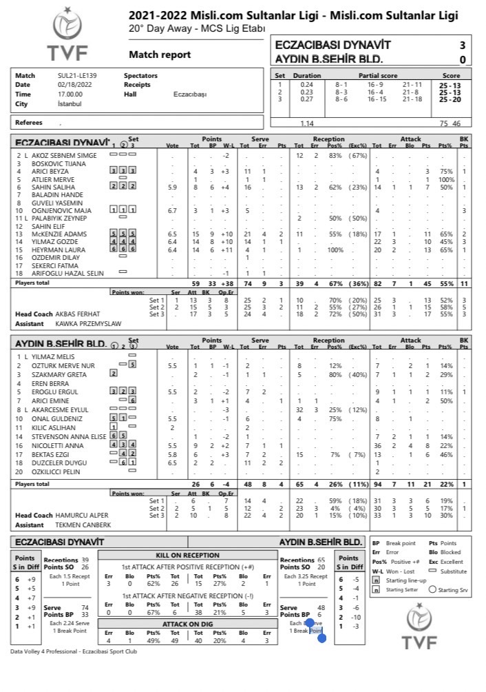 1. Eczacibasi dynavit 3 - 0 Aydin