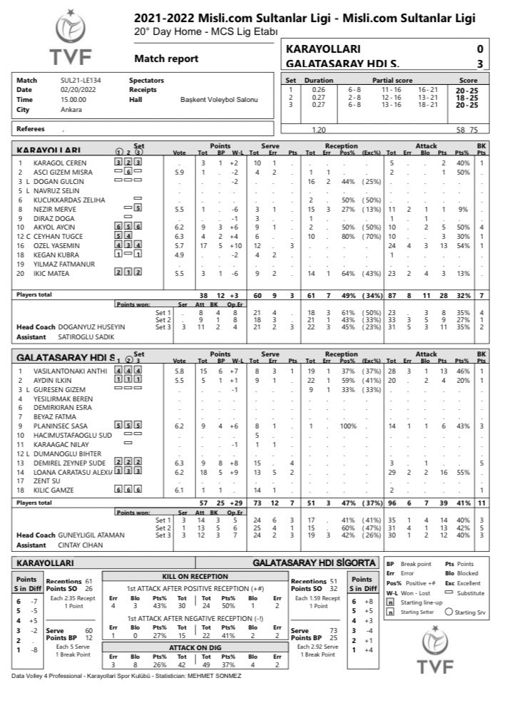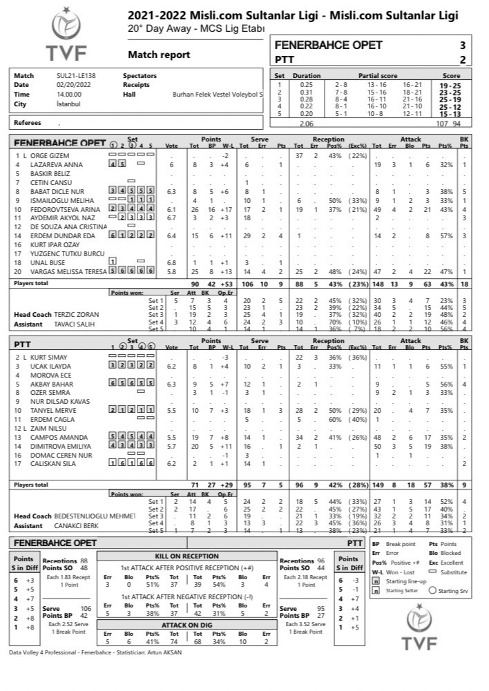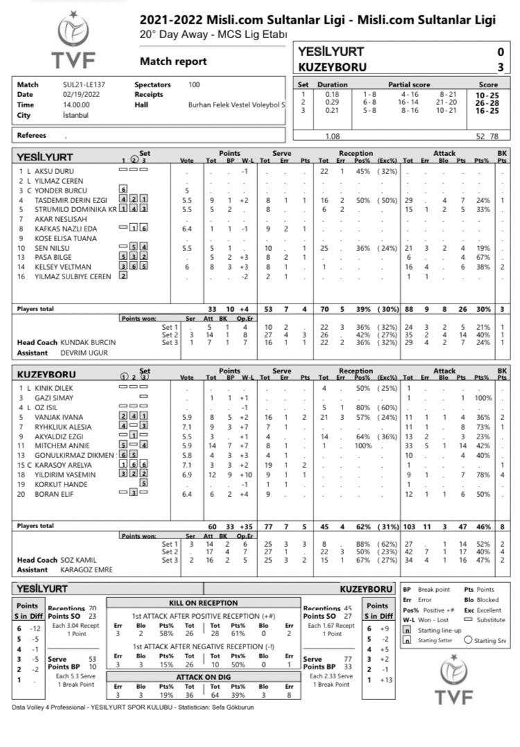 สถิตินักกีฬาของลีกตุรกีในสัปดาห์ที่ 20 ฤดูกาล 2021-2022