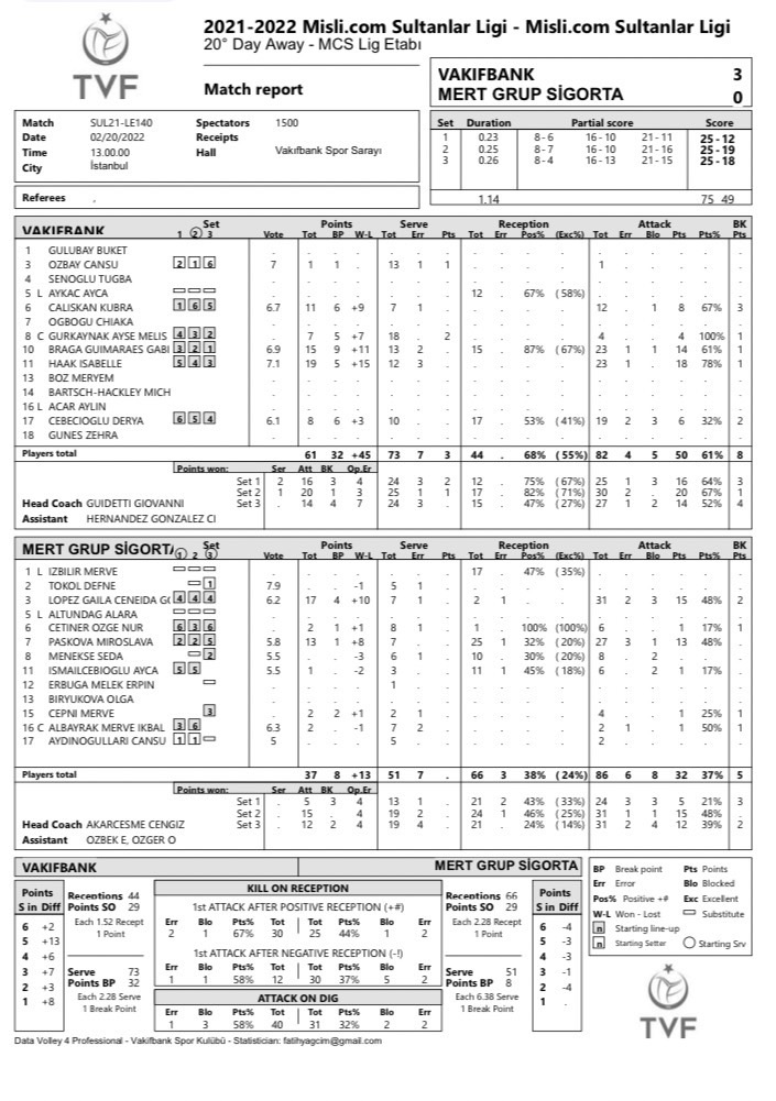 3.Vakifbank 3 - 0 Mert grup sigorta