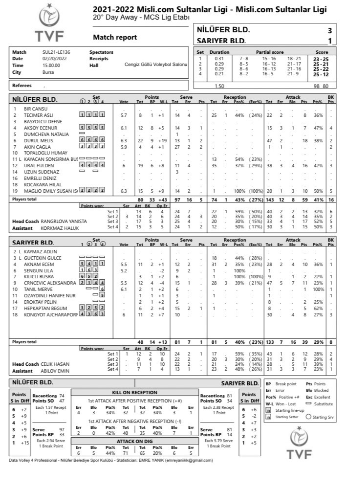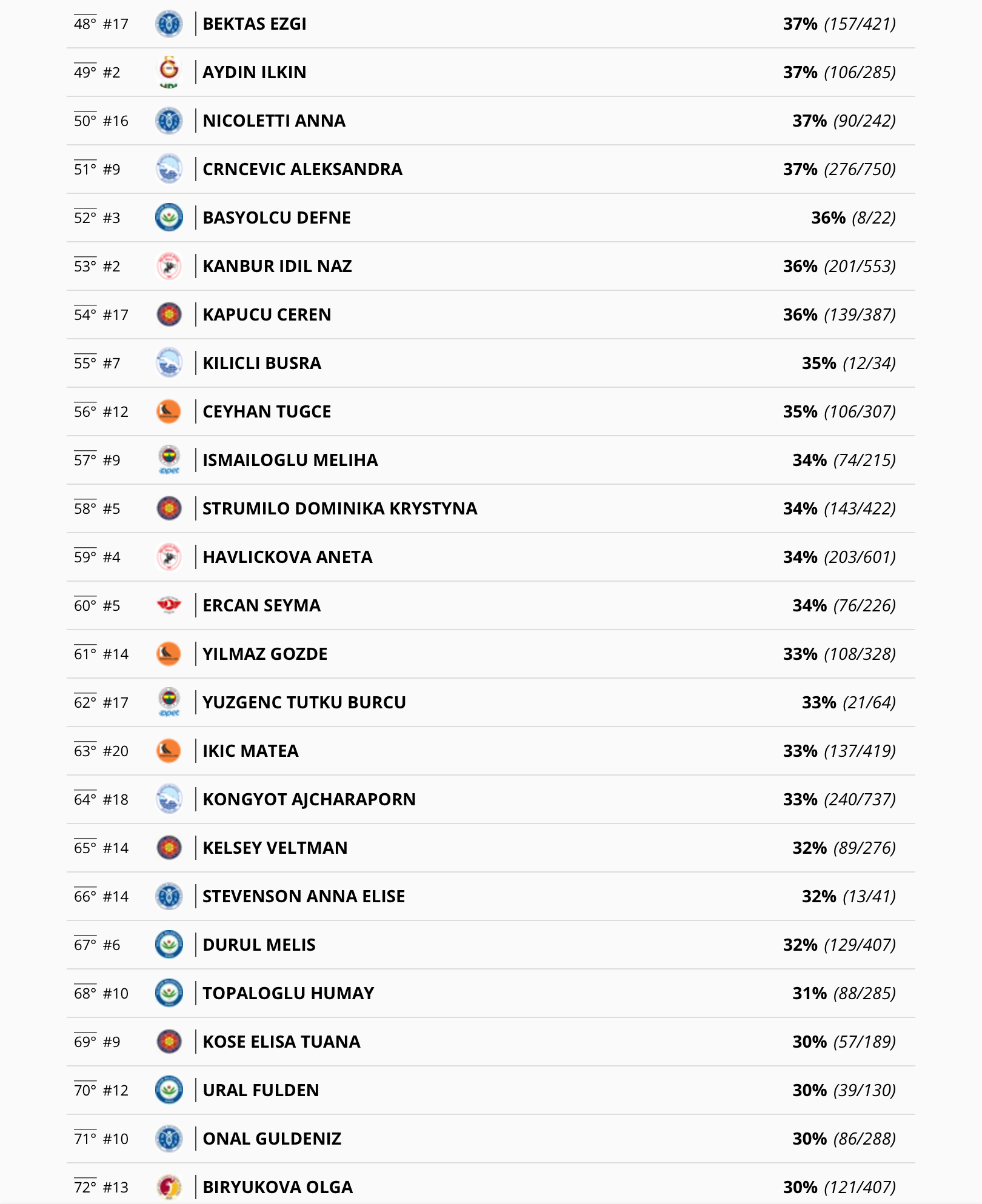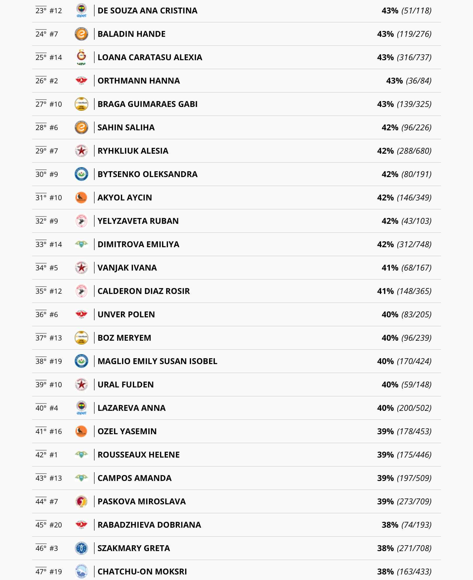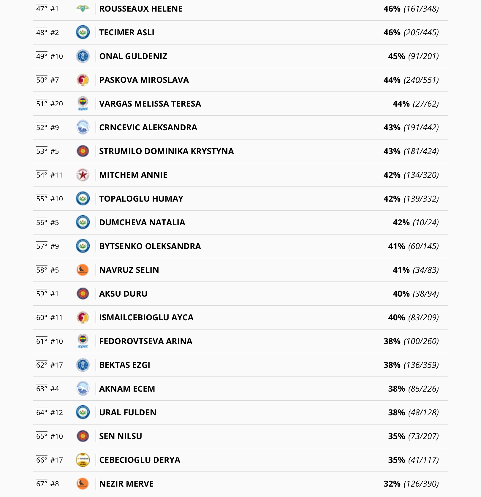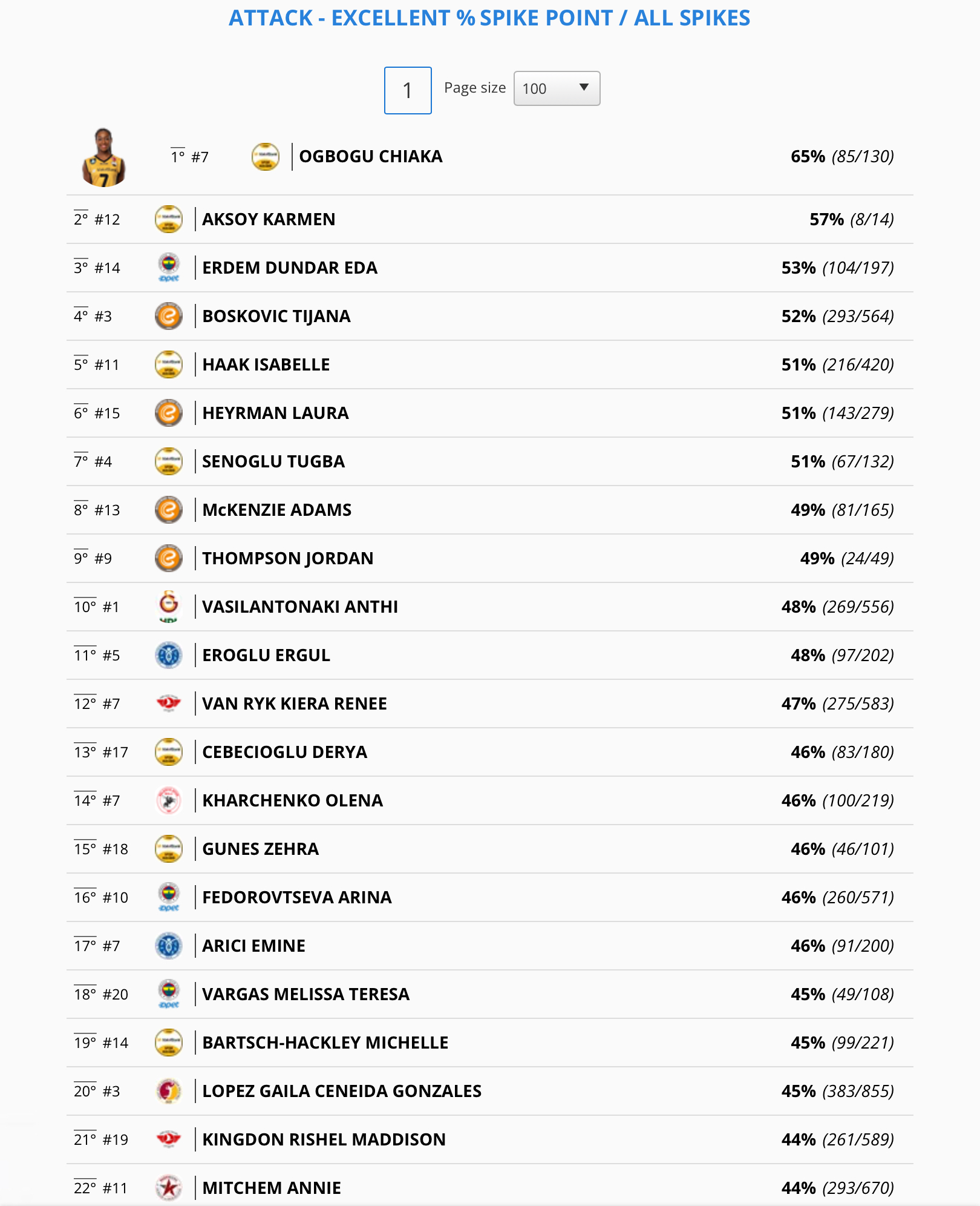 หมายเหตุ : แต่ละแมตช์ที่นักกีฬาลงเล่นมีความแตกต่างกัน เพราะถ้ามองในความเป็นจริงแล้วบางคนต้องเล่นแมตช์ที่ยากเสมอเช่นกับทีมหัวตารางที่การแข่งขันย่อมสูงกว่า ในบางครั้งสถิติของพวกเขาก็อาจจะไม่ได้ดีเสมอไป หรือแม้แต่การเล่นในแต่ละตำแหน่งของผู้เล่นเอง ทั้ง OPP , MB หรือ OH ก็มีความยากง่ายในการรุกที่ต่างกัน โปรดใช้วิจารณญาณครับ👌