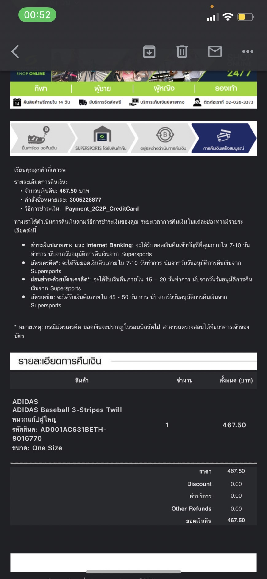 สั่งสินค้าจากเว็บ supersport โดนยกเลิกสินค้าเเต่ยังไม่ได้เงินคืน