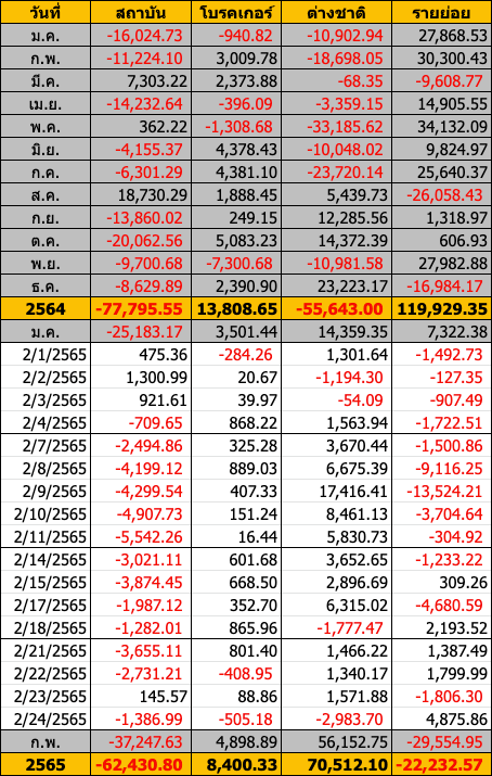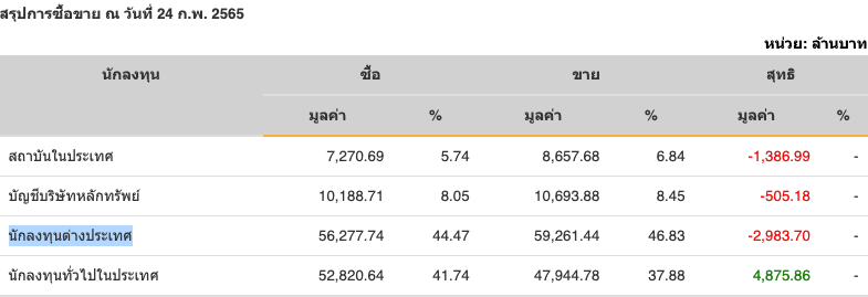 Sinthorn Summary : 24/2/2565 : ต่างชาติขายสุทธิ -2,983.70 ลบ.