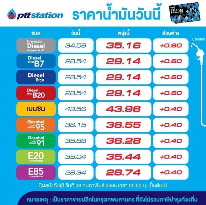 เมื่อวานเห็นมีการปรับขึ้นไปก่อนแล้ว 1 บาท คิดว่าวันนี้เจ้าอื่นน่าจะมีการประกาศปรับบ้าง แต่ยังไงก็ตามน่าจะมีผลอีกวัน คิดว่ายังไงเตรียมตัวเติมกันได้ รวมถึงวันพฤหัสมีประกาศลดการอุดหนุนดีเซลพรีเมียมและ E8