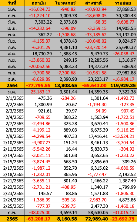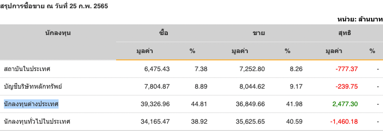 Sinthorn Summary : 25/2/2565 : ต่างชาติซื้อสุทธิ 2,477.30 ลบ.