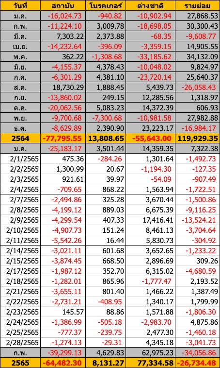 Sinthorn Summary : 1/10/2565 : ต่างชาติซื้อสุทธิ 6,138.46 ลบ.