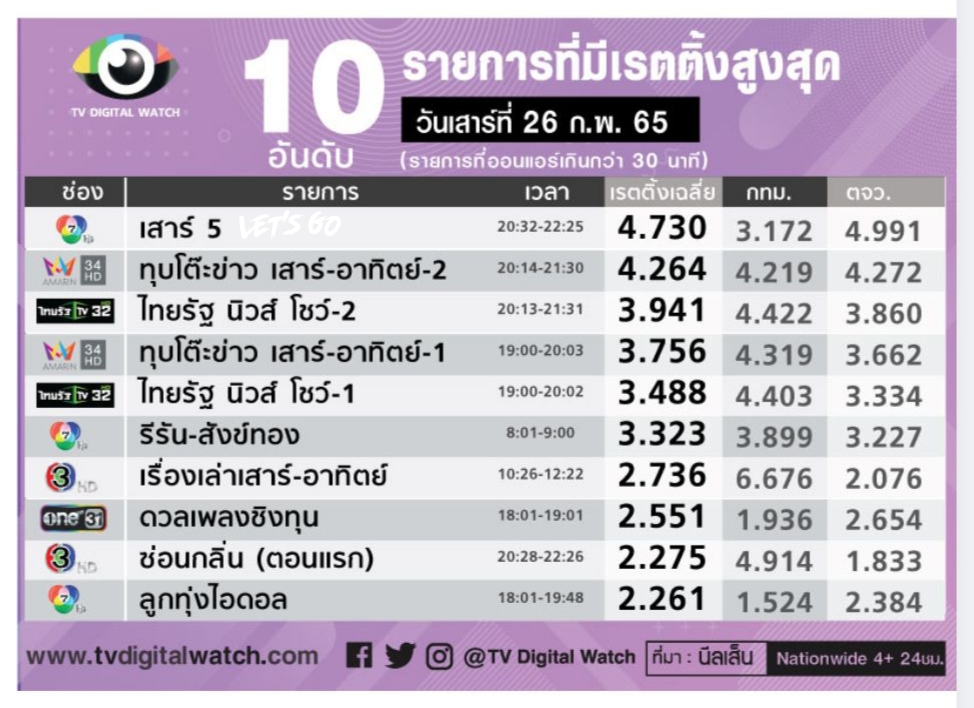 ได้ไป 1.633 ข้อมูลจากRating TV THAI
