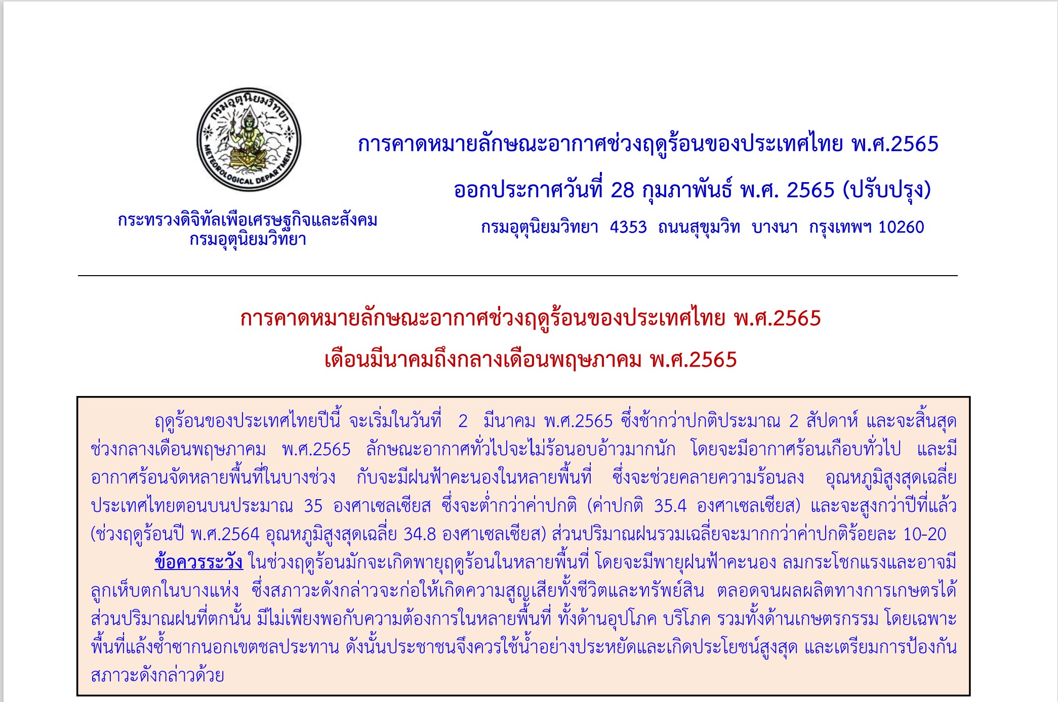 สำหรับคาดหมายฤดูร้อนปี 2565 (ฉบับปรับปรุง) มีดังนี้
