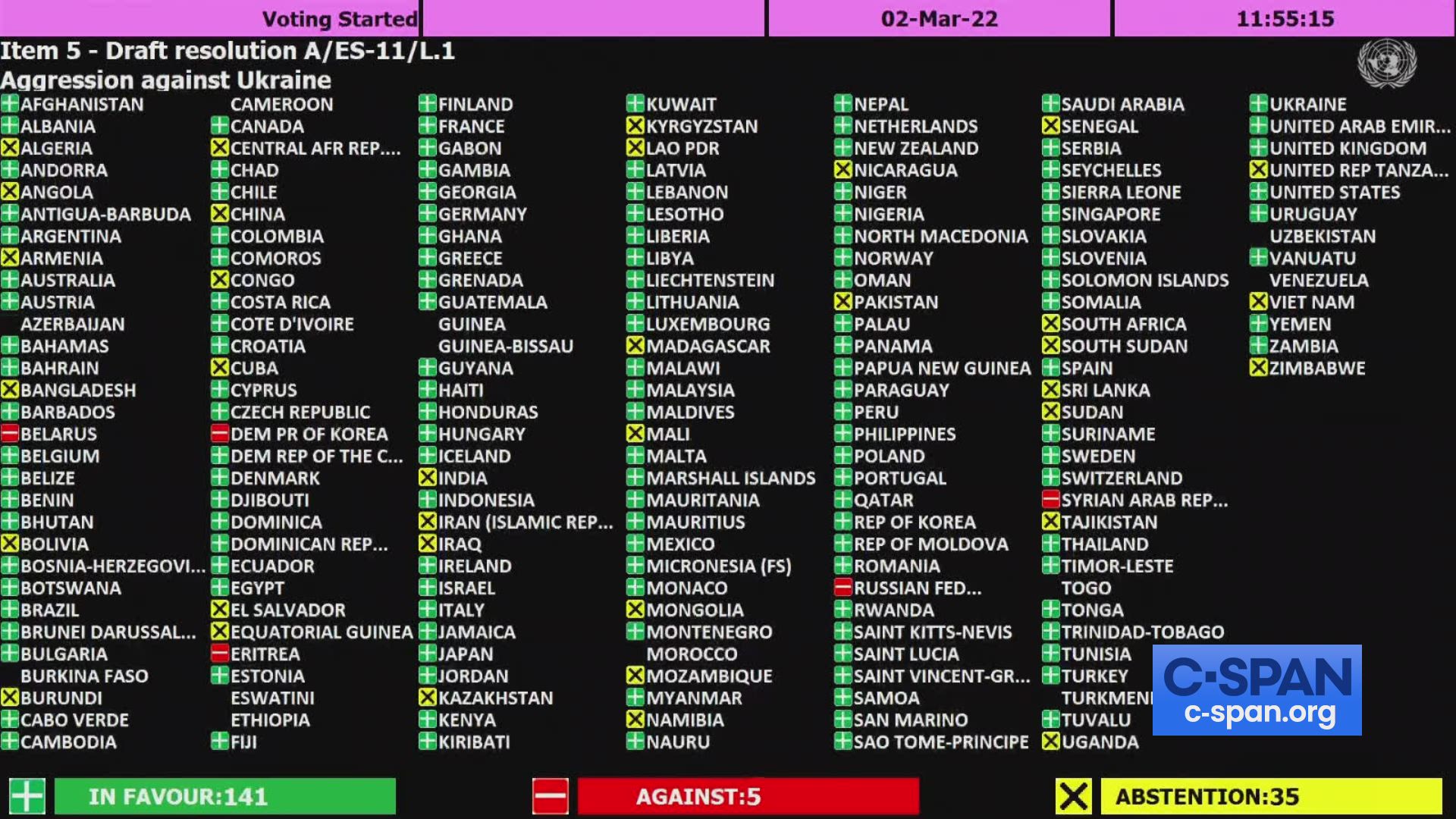 รายชื่อที่โหวด ประนามรัสเซีย ในการประชุม UN เมื่อคืน (ลุ้นประเทศไทยกัน)