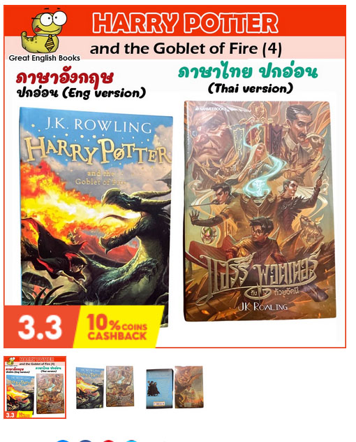18. พร้อมส่ง (Thai/English) แฮร์รี่ พอตเตอร์ กับถ้วยอัคนี เล่ม 4 ฉบับปี 2020 (ปกอ่อน) Harry Potter and the Goblet of Fire (paper back) 250.- https://shp.ee/xxk3uvb