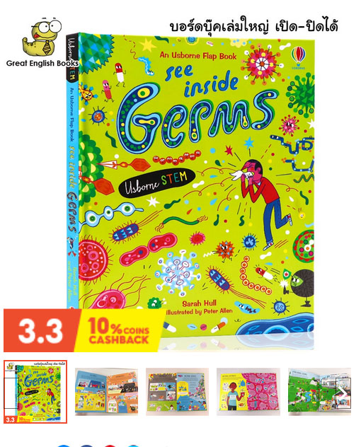 9. พร้อมส่ง บอร์ดบุ๊คเล่มใหญ่ Usborne See inside Germs สำหรับ 6 ขวบ+ Board book กระดาษแข็งทุกหน้า with flaps 290.-