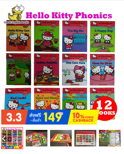 8. พร้อมส่ง ชุดหนังสือนิทานคิตตี้ฝึกหัดอ่านโฟนิกส์ Hello Kitty Phonics หนังสือหัดอ่านภาษาอังกฤษ 12 เล่ม 450.-