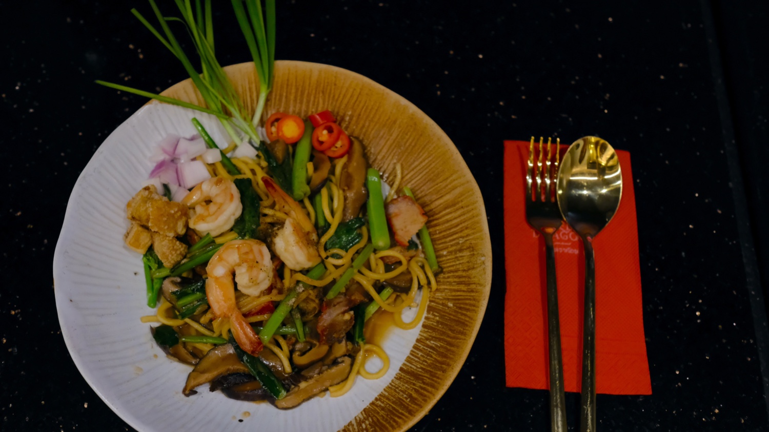 ผัดหมี่ฮกเกี๋ยน หมี่เส้นนุ่ม เนื้อกุ้งแน่นๆ เครื่องเยอะมากค่ะ รสชาติดี แต่มันไปหน่อย