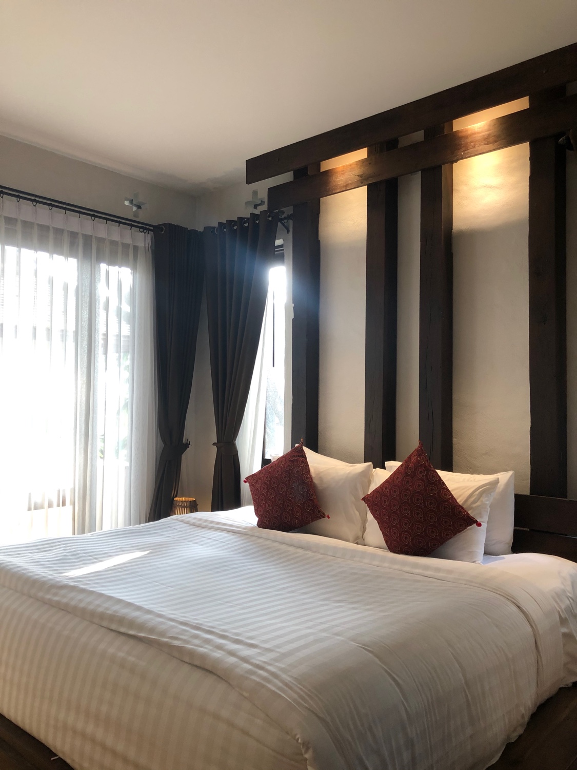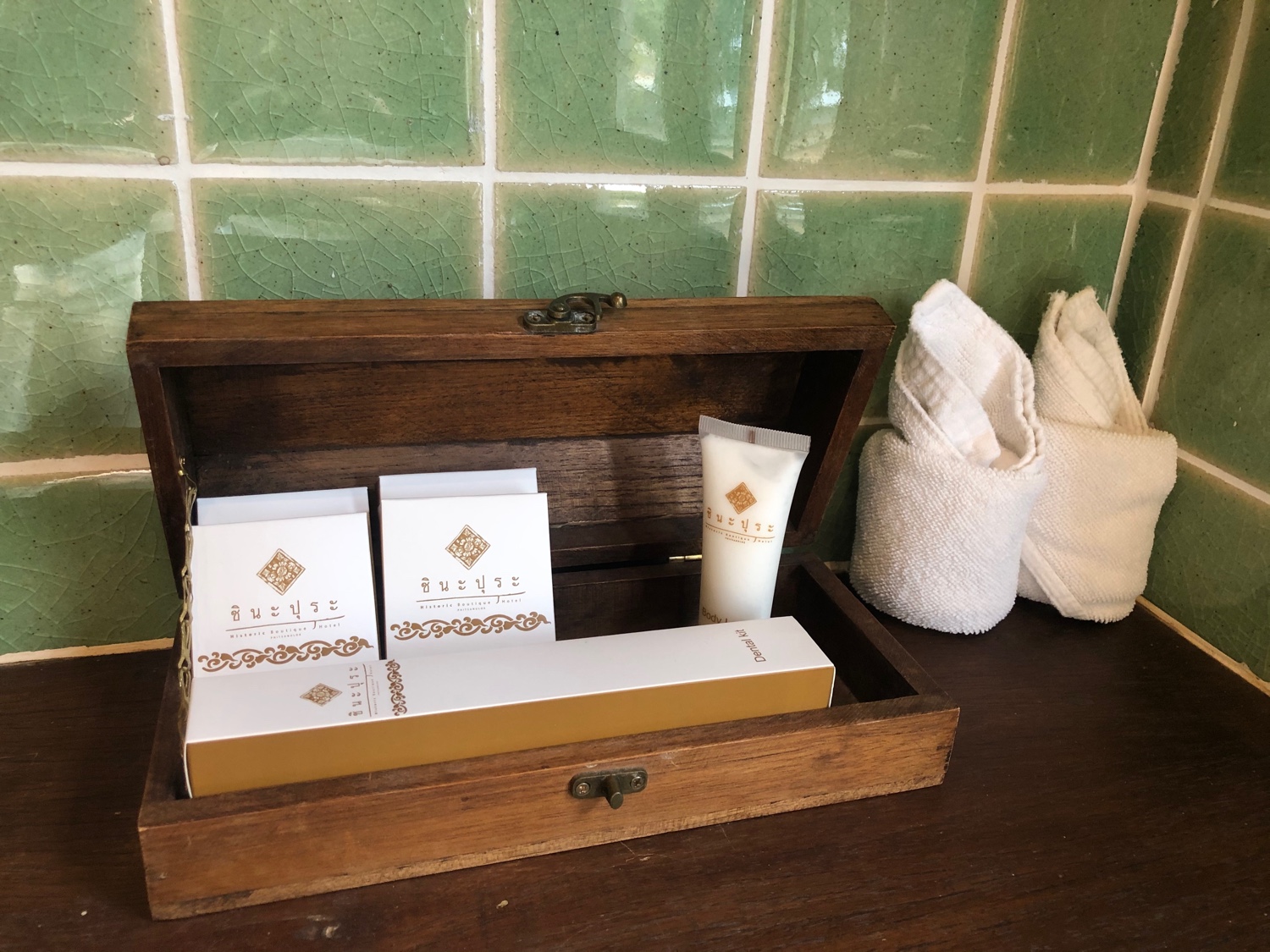 ภายในห้องตกแต่งสวย มีเอกลักษณ์ความเป็นไทย ขนาดห้องไม่เล็กมาก และข้าวของเครื่องใช้ทางโรงแรมเตรียมไว้ให้อย่างครบครัน