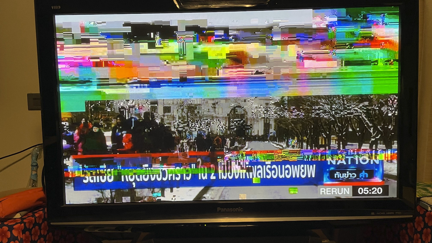 พอดีเปิดทีวีดูแล้ว ภาพมันกระตุก ขาดๆหาย ประมาณแบบในรูปนี้น่ะครับ คิดว่าไม่น่าเป็นที่ตัวทีวี เพราะพอดีที่บ้านมีตัวchromecastอยู่ เลยลองเอามือถือมาเปิดแอปที่ยิงขึนจอได้ (พวกyoutube netflix) พอยิงขึ้นจ