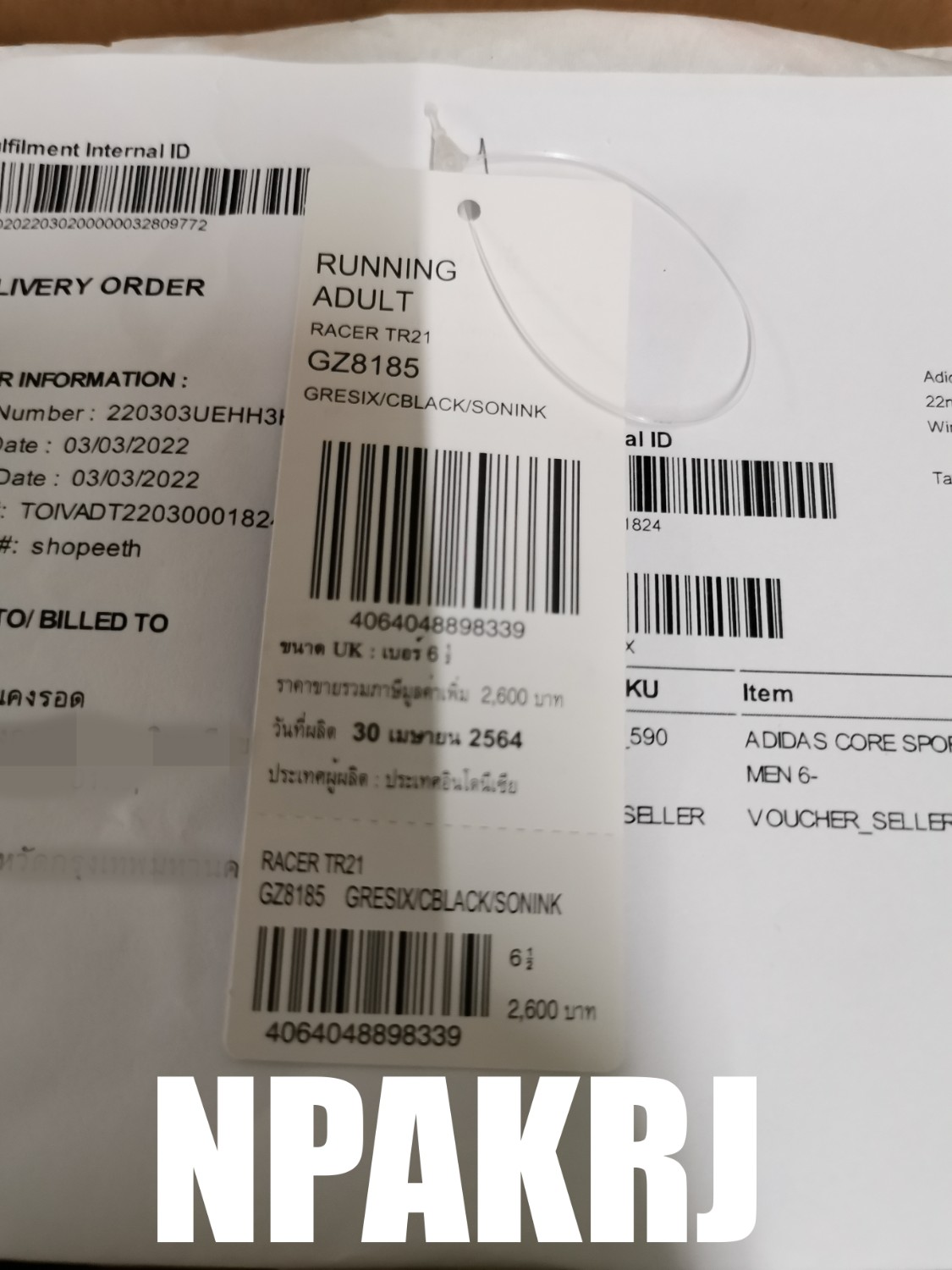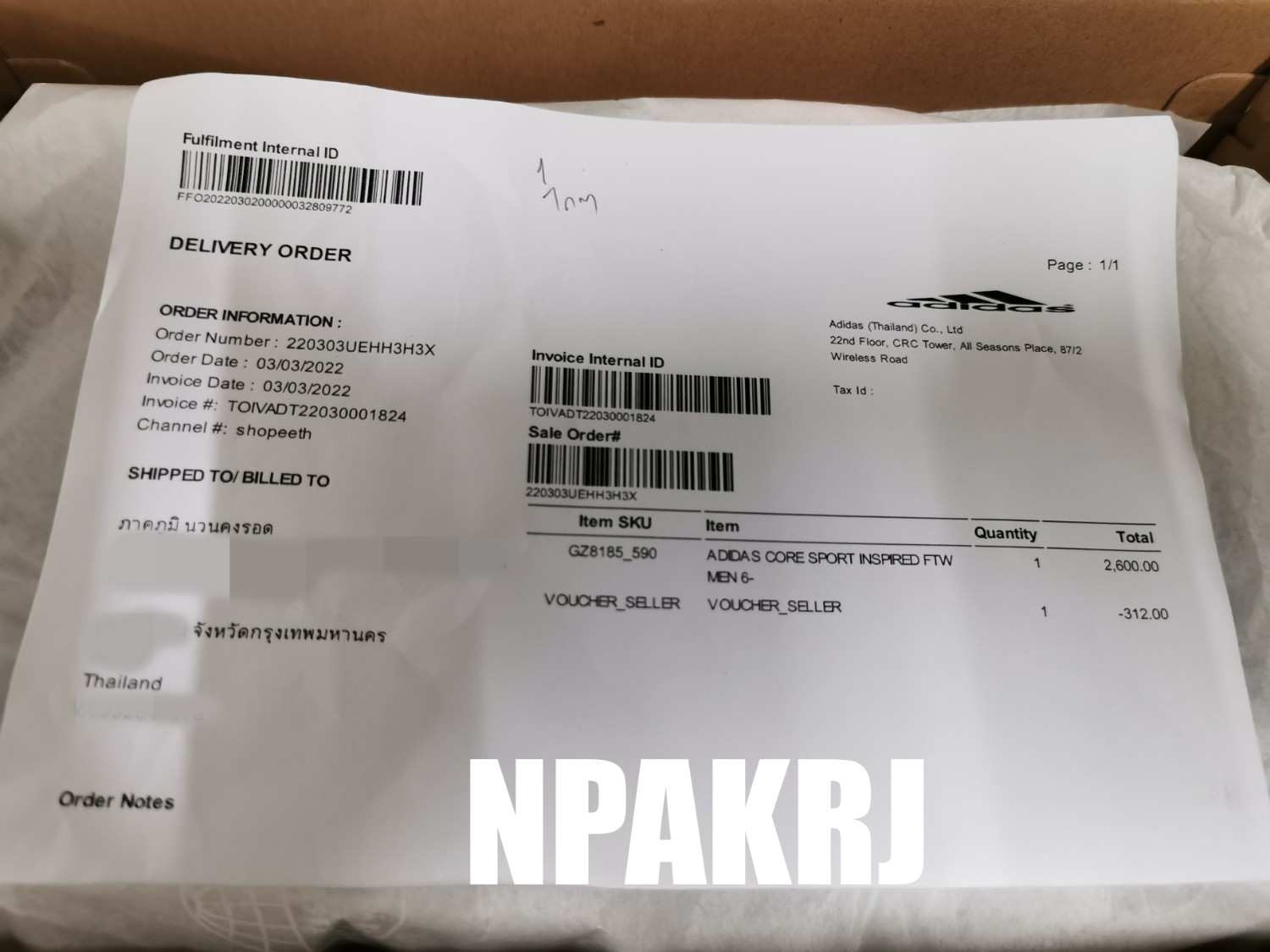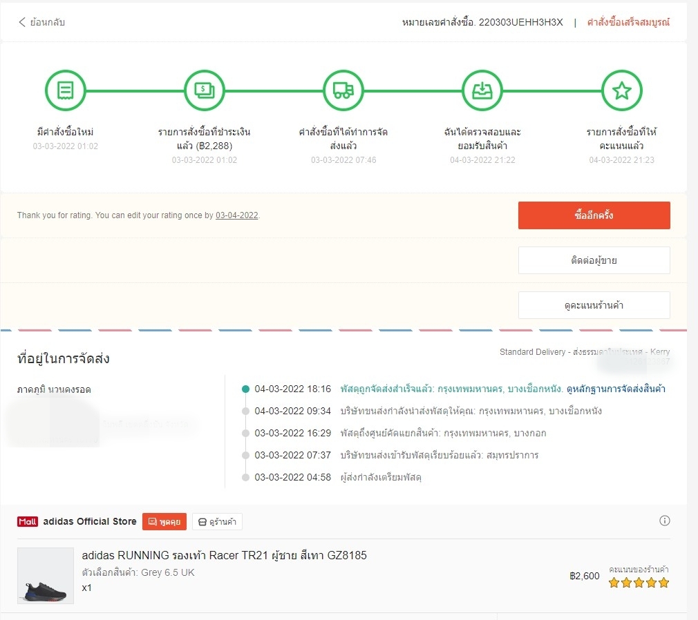 วันที่ซื้อมา หรืออายุของสินค้า (time from buy): ซื้อจาก Shopee Mall Adidas มาเมื่อวันที่ 03/03/2022
