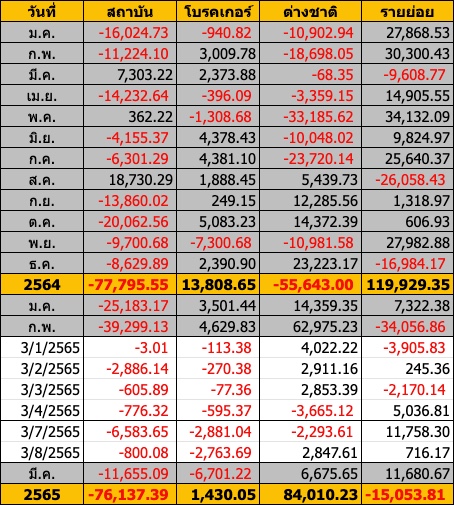 Sinthorn Summary : 8/3/2565 : ต่างชาติซื้อสุทธิ 2,847.61 ลบ.