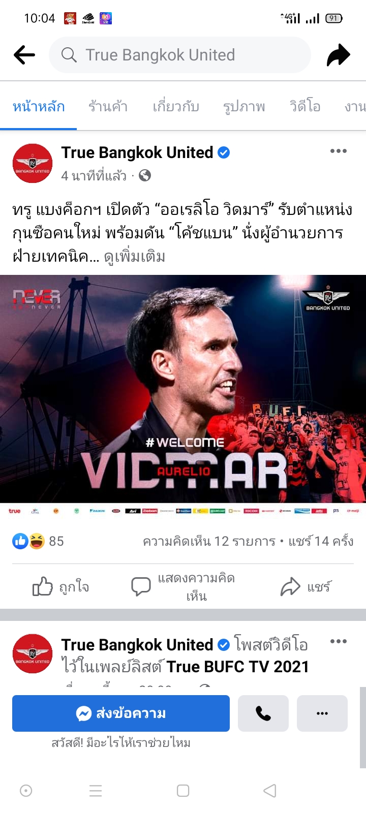 breaking news เพจอย่างเป็นทางการสโมสรแบงค็อกยูไนเต็ดประกาศวิดมาร์คุมทัพ โค้ชแบนเป็นผู้อำนวยการเทคนิค