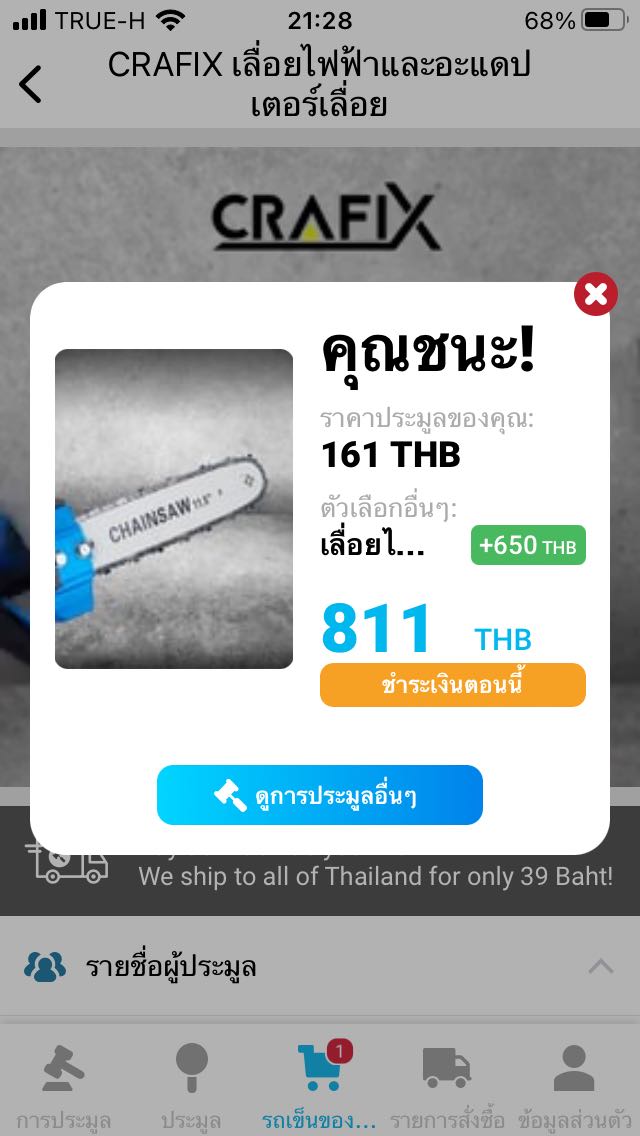 สอบถามหน่อยครับ พอดีไปประมูลเลื่อย ไฟฟ้า Clilindo มา ได้มา 161 บาท แต่พอจะกดชำระ กลับ+เพิ่ม650บาทเป็น811บาท
