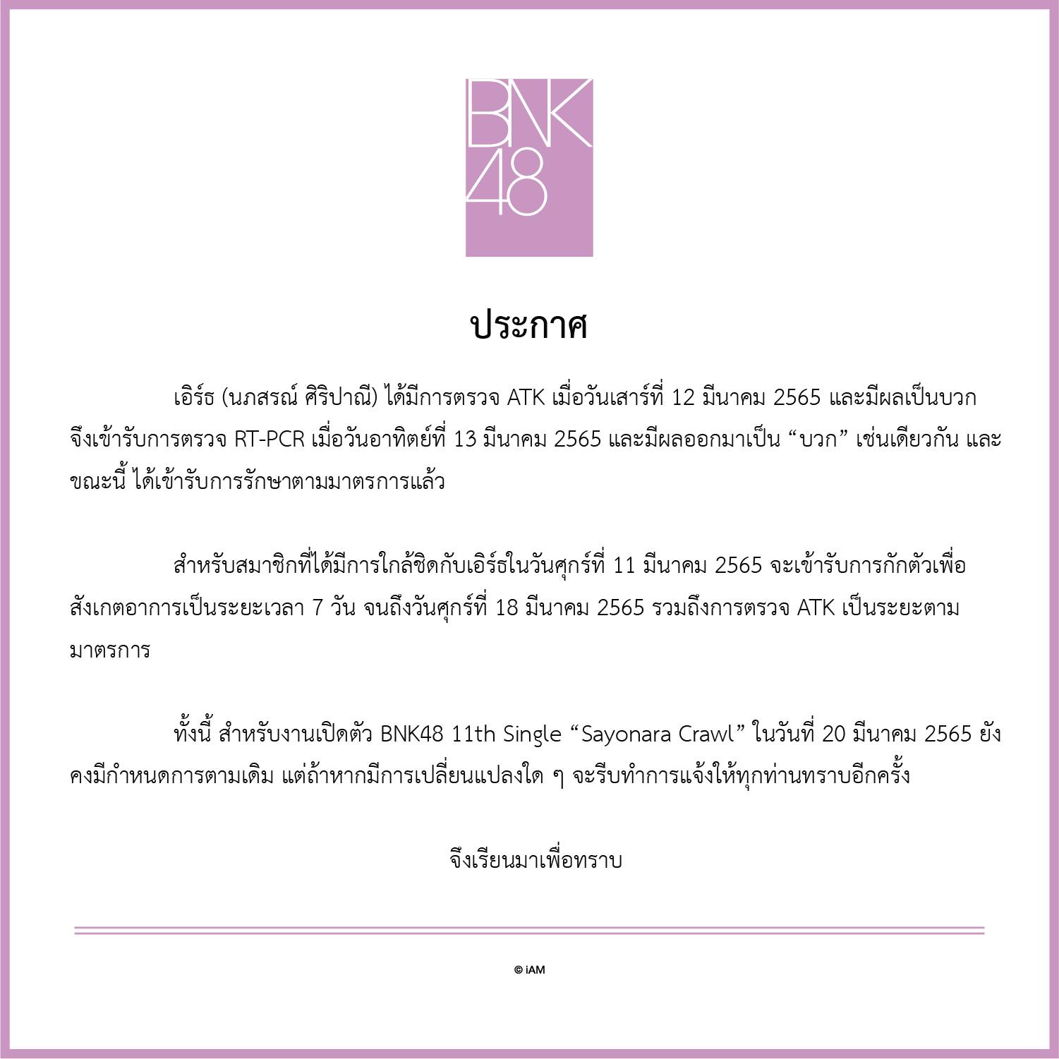 สมาชิกที่ใกล้ชิดกับน้องเอิร์ธจะกักตัวจนถึงวันศุกร์ ส่วนงานเปิดตัวเพลง Sayonara Crawl ยังคงจัดตามกำหนดเดิม