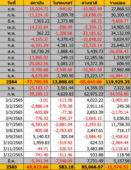 Sinthorn Summary : 29/3/2565 : ต่างชาติซื้อสุทธิ 3,653.15 ลบ.