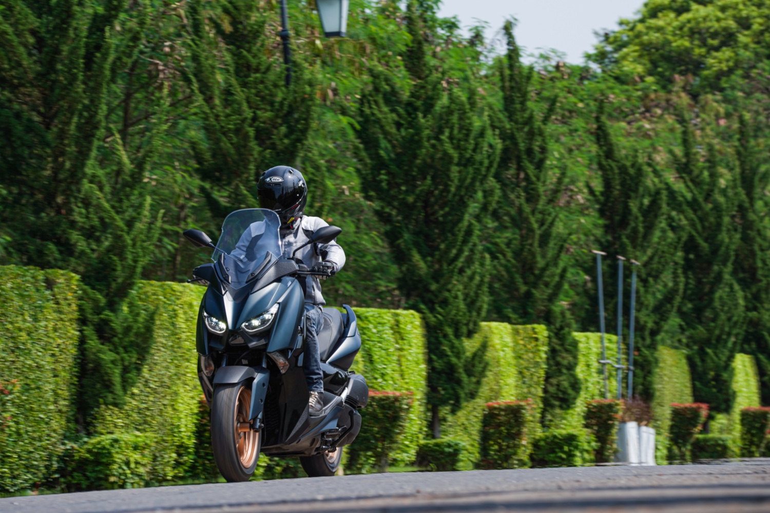 ซึ่งก็นั่นละครับรถประจำตำแหน่งของเราในทริปนี้ก็เลยเป็นเจ้า Yamaha XMAX สี Dark Petrol ซึ่งบอกตรง ๆ ว่าเมื่อเรามองด้วยตาเปล่านั้นตัวรถจะออกสีเขียว ผสม ๆ กับสีน้ำเงิน ซึ่งมันจะมีความเหลือบของสีอยู่แต่ผมชอบมันนะ ผมว่าสีสันใหม่ของ XMAX ปีนี้ทำออกมาได้สวยเลยนะ สีดูพรีเมียมเหมือนพวกรถซูปเปอร์คาร์มาก ๆ คิดว่าคงจะโดนใจใครหลาย ๆ คน