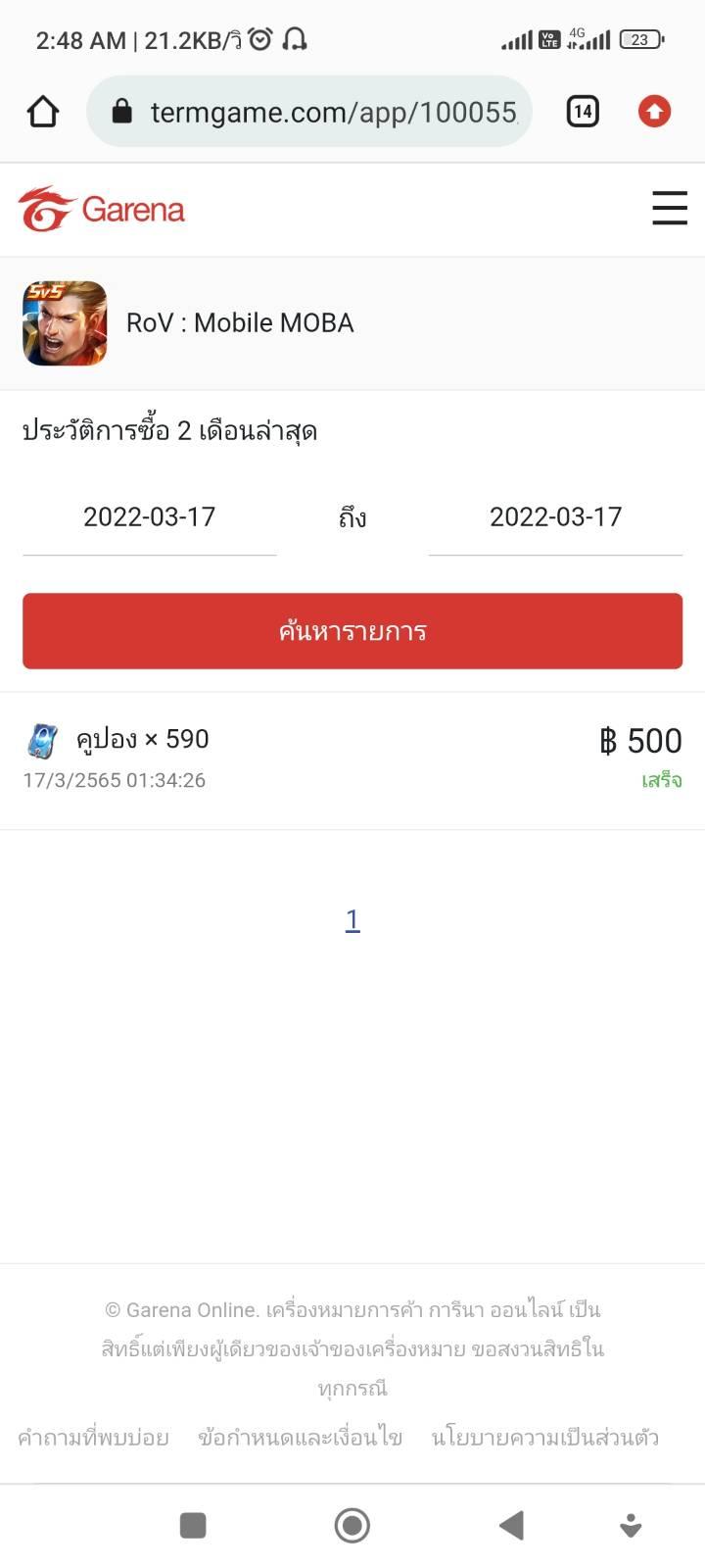 มีปัญหาการชำระเงินผ่านดีแทค (DTAC) เติมเกม ROV ไม่ได้ ทั้งที่เคยเติมได้มาก่อน